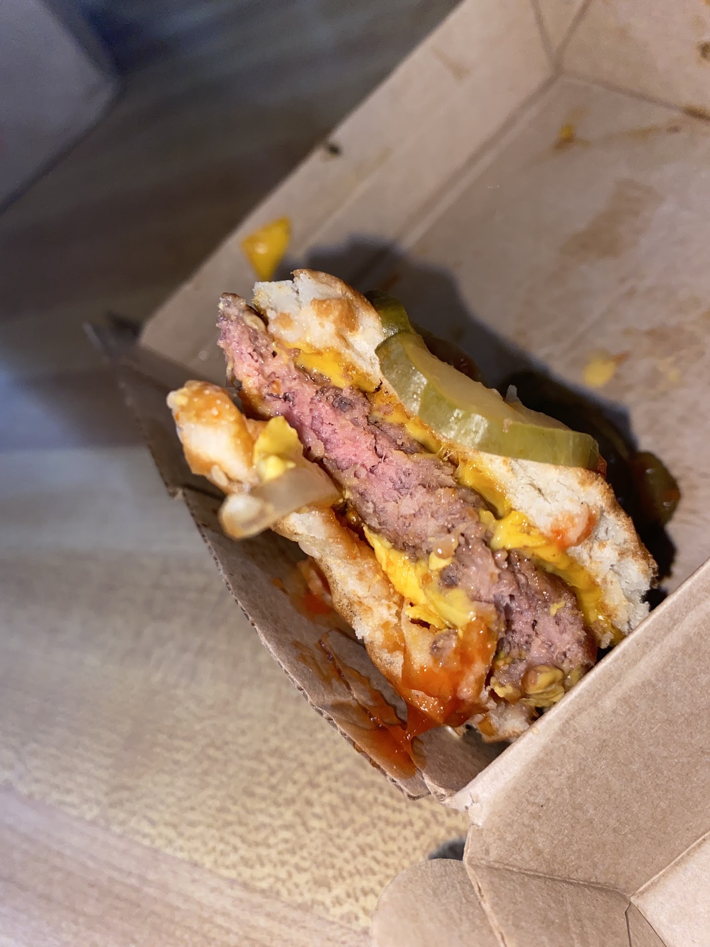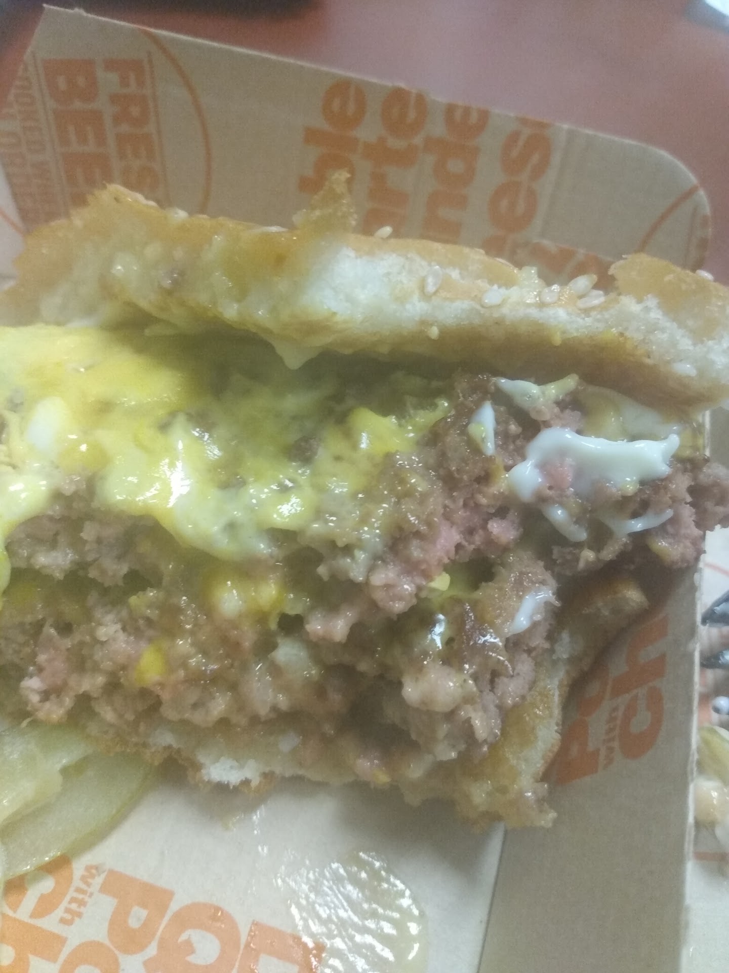 The burger đ and fries were salty as all get out. The food didn't taste fresh and the burger was just "slopped" together as though whoever made it didn't want to be there and they wanted everybody including the customers to know it.
