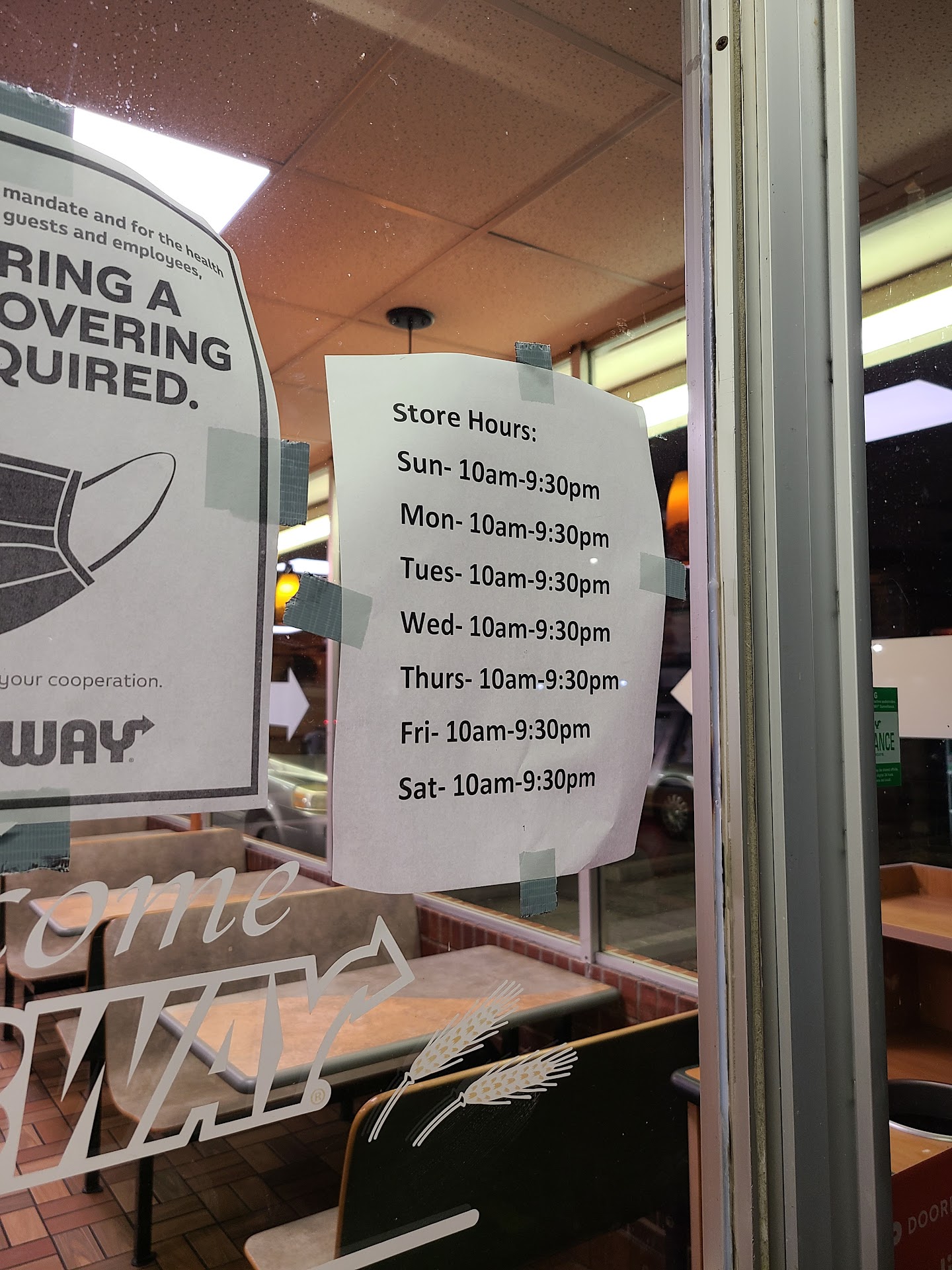 Read moreI came in on May 15th 2022 at around 4PM to order 2 foot-long cold cut sandwiches. There was ONE employee working on a sandwich for a woman ahead of me in the line. A guy came in after I did to pick up his online order. I observed the employee trying to get our sandwiches done quickly. He seemed nervous. When he started on my order, I asked him where the onsite manager is. He told me he was by himself. THIS is a MINOR working ALONE in the restaurant! The kid doesn't look older than 15 or 16! Health department and city codes require a manager to be on site at all times. Some woman wearing a Subway t-shirt came into the store, walking to the soda dispenser to get herself a drink. But she left the store and got into her car. Where did she come from? She wasn't there when I pulled into the parking lot at this location. I thought she was the manager coming back from her break?? Nope. The minor was left alone to work inside a restaurant with 3 or 4 customers waiting on him to finish their sandwich orders. This is definitely a safety issue because if he gets hurt on the job and no manager is there, the restaurant and its management would be in serious trouble not only with the city but also the county (health codes), state (labor laws) and federal (child labor laws) departments. He also needs to be re-trained to observe health code requirements to wash his hands when he changes his gloves or when he finishes interacting with the customers at the register. God forbid the restaurant management allow minors to work alone in the restaurant at...