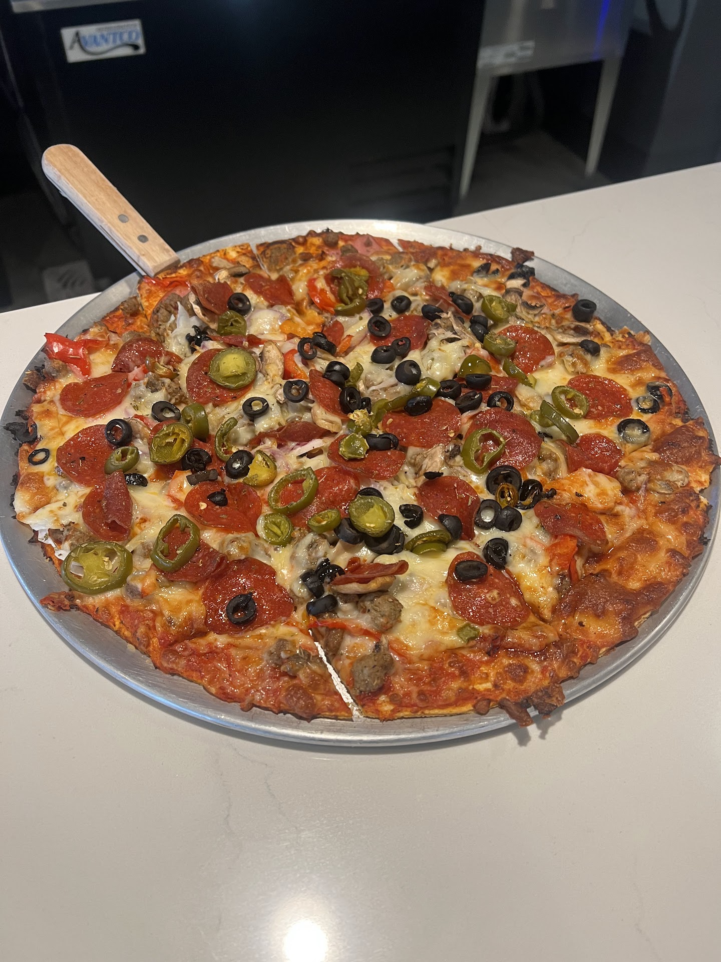 The positives are the pizza is really good. They have a HUGE menu with so many options. The staff is friendly and welcoming.