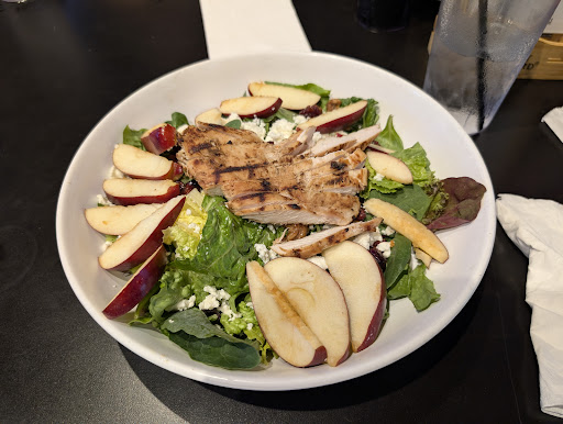 For my main meal, I ordered the apple crunch salad with added chicken breast. The salad was a great portion size and well plated. My only complaint would have been that the apple was cut into some pretty large slices, nothing some quick work with a butter knife could not fix, but it took some effort to make the apples easier to consume in this salad format. Chicken was cooked well and everything paired well with the raspberry vinaigrette I chose.