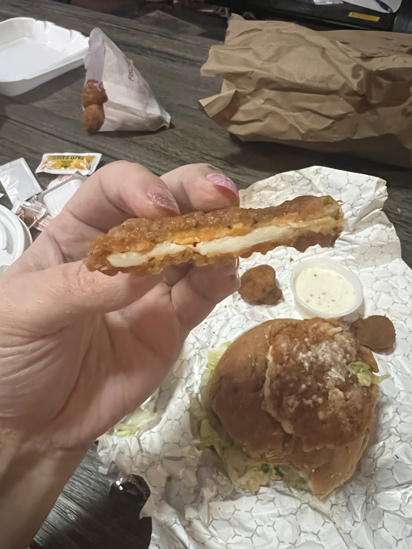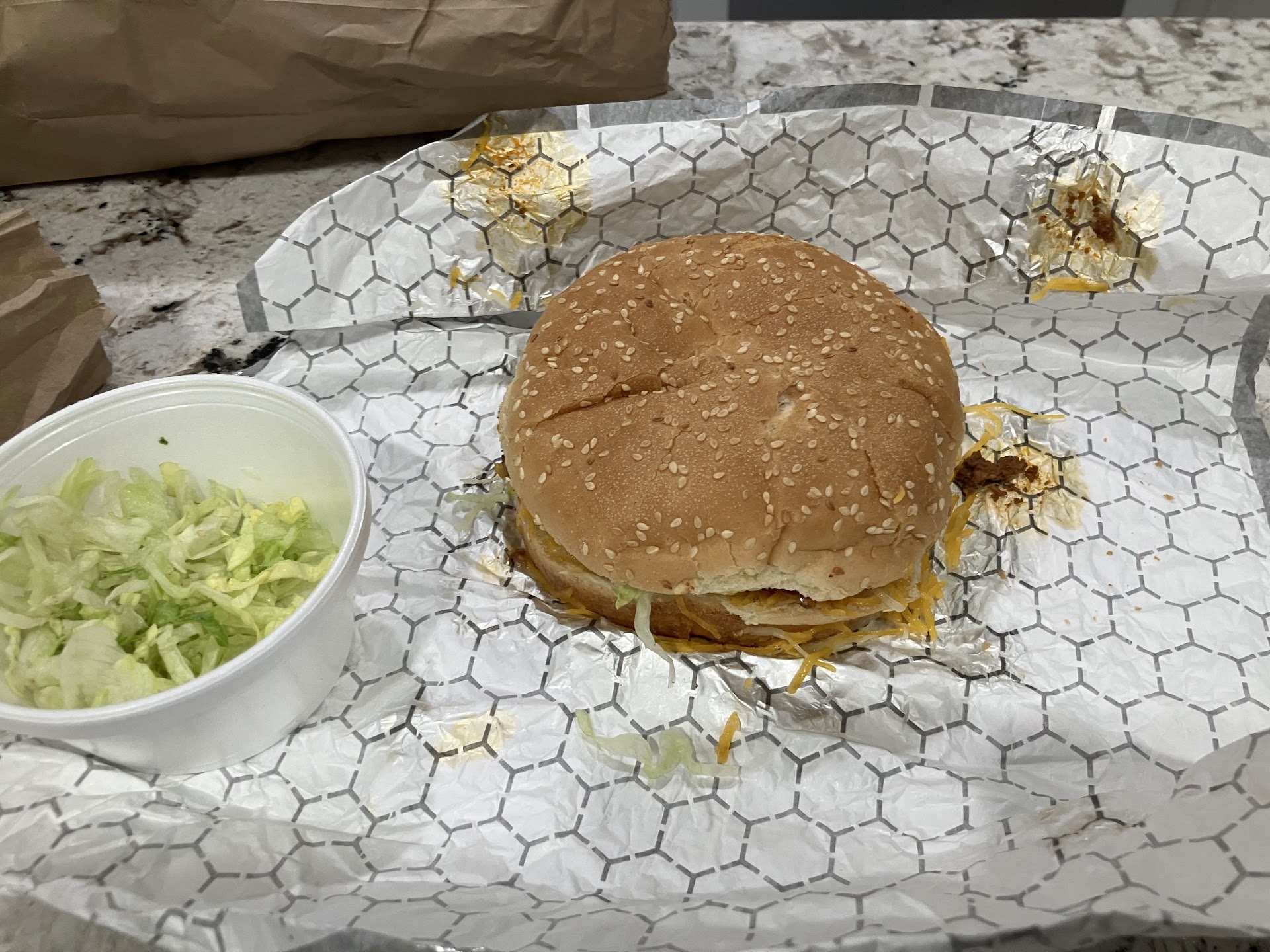 Read moreI don’t normally do this but when it’s deserved, I definitely will. I did not receive half my order I paid for. I didn’t get a whole meal which was for my daughter- season fries, hamburger and jalepeno peppers. What I did end up getting was disappointing. I got a spicy chicken sandwich which in the photo on the menu looked absolutely delicious. However, what I got is pictured. The thinnest, dry piece of chicken. The whole sandwich was about 1 inch thick, compared to the menu pic. I will say, the young man who was working the window was very kind and good at his job. My boyfriend got the tacos supreme and they were good. Also, the fried...