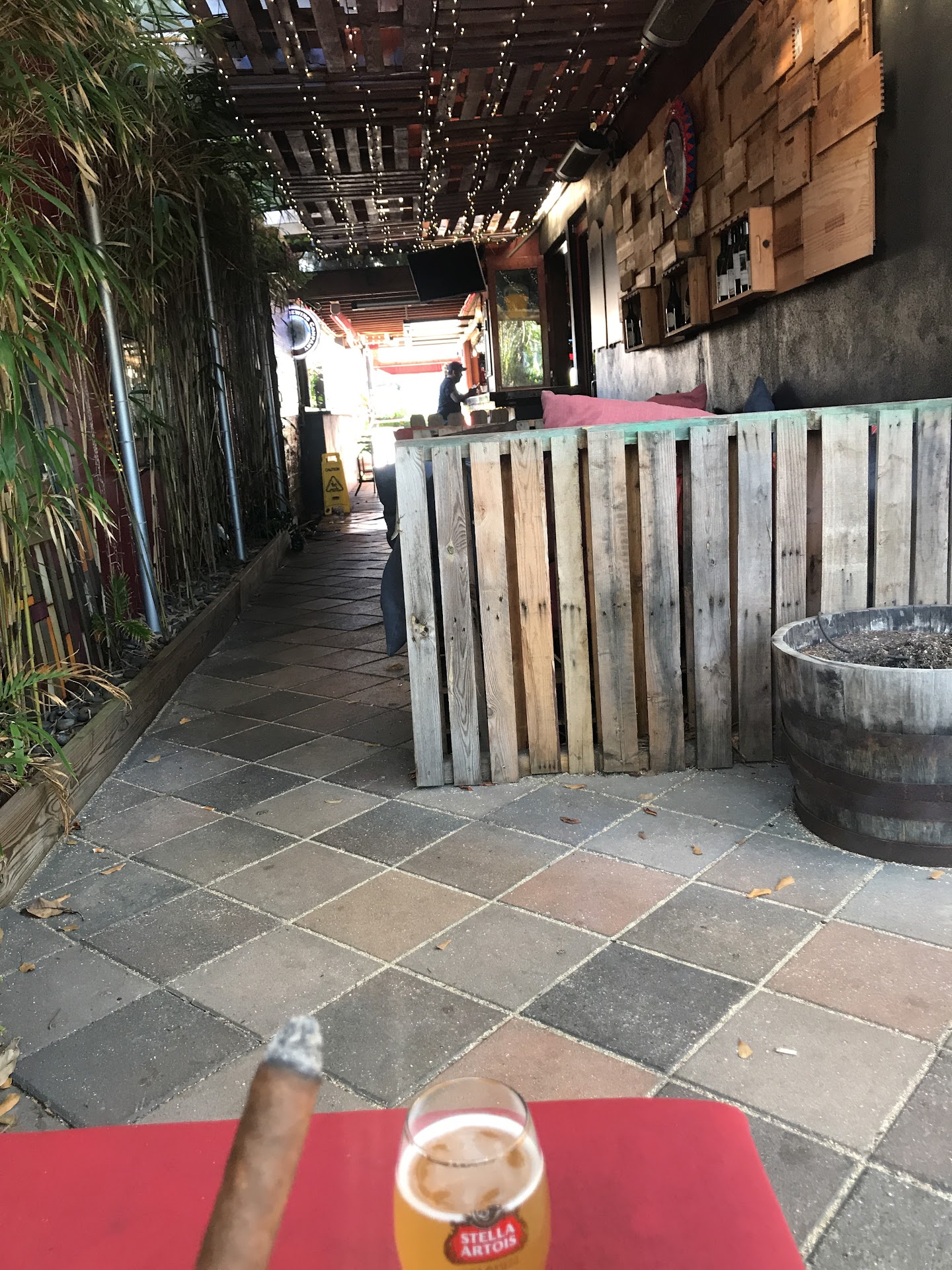 The patio: in the summer, the staff isn't allowed to turn the fire pit off on hot nights. The coconut palms are dropping coconuts onto the seating and there are plenty more ready to fall. (I mentioned this to the bartender, who seemed - again - apathetic. There is trash from old decoration behind the seating.