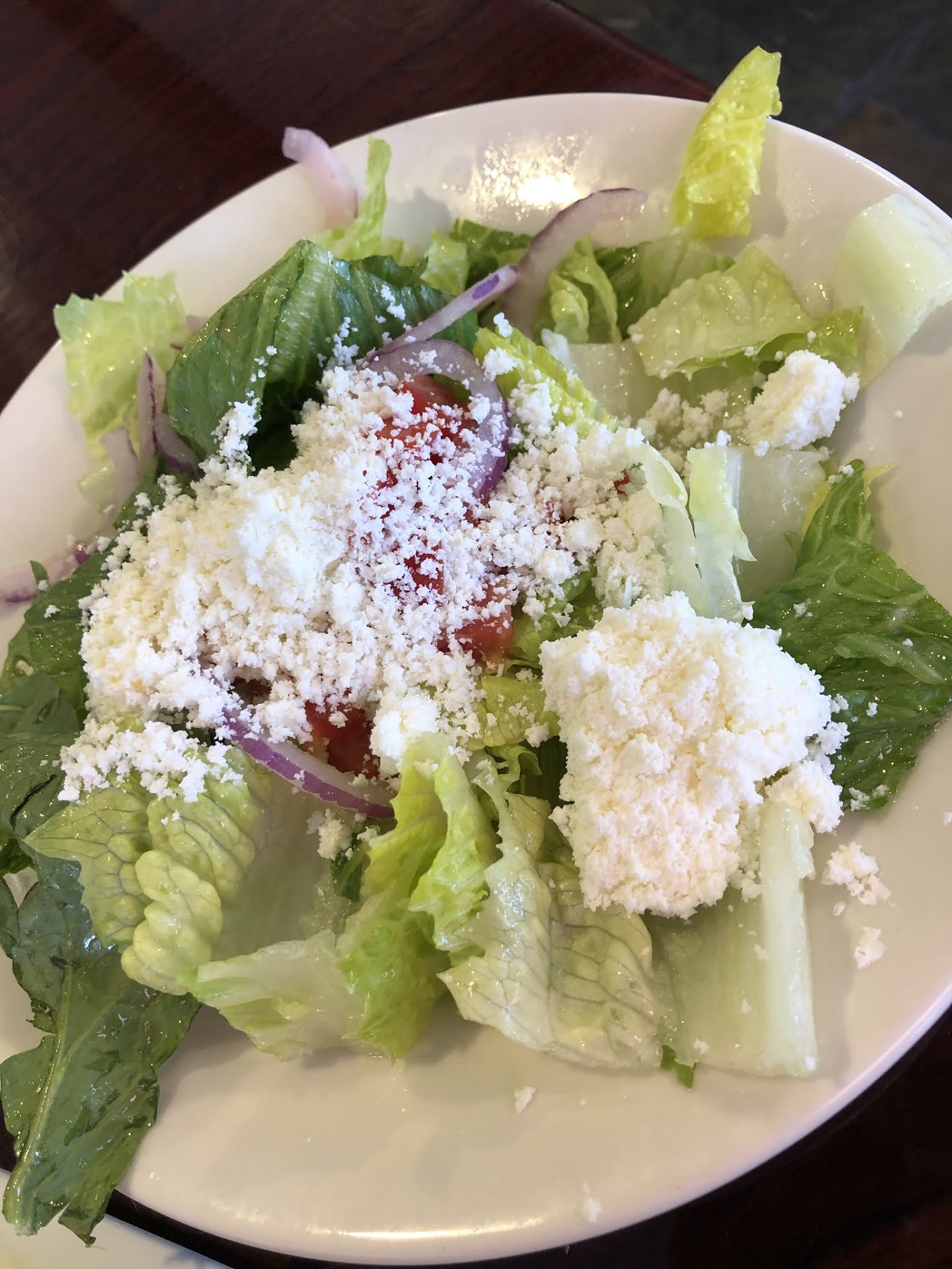 My entree, I chose the Lamp Chops. Three 6-oz T-Bone chops herb seasoned to perfection. Served with a delectable jasmine rice and a sauteed veggie medley. NOTHING can beat the sweet signature note of lamb. In perfect time, I was presented with a Three chop orchestra of harmonious flavor notes! AND a Super bowl of side salad, so fresh with a hint of olive and the most amazing feta ever!