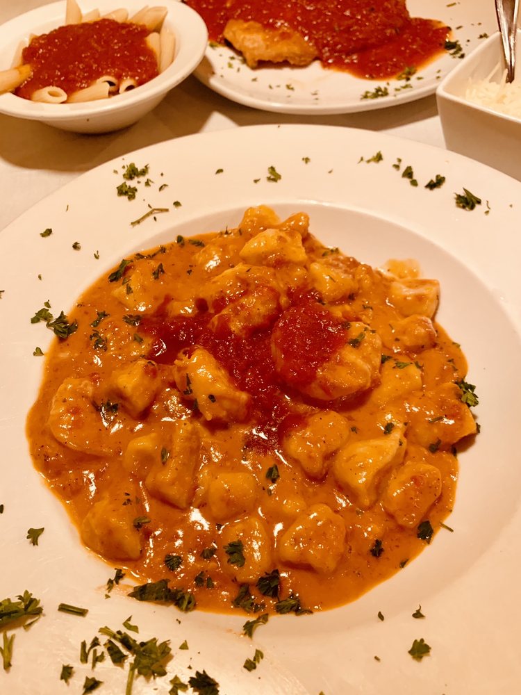 Since it was our anniversary I thought I’d take JoAnn out for a nice dinner because even though I cook better than most restaurants she still likes to get dressed up and “be amongst the living.” JoAnn likes a crowd, so we arrived at 6:45 p.m. on Wednesday to a nearly empty ristorante. I asked the young hostess for a table for two and she hesitated and said let me see what I can do and walked away. I thought, what the hell? This place is a ghost town! What could she be seeing about? But then I peeked at the reservation list and there was like eight reservations for 7 p.m. I told JoAnn about the reservation list and she was a bit steamed because she asked if we needed reservations and I said no because I had no idea you needed them for any restaurant in the area, but the young hostess managed to find us a nice booth after JoAnn did puppy paws and said pretty please we picked this place special for our anniversary. We started with fried calamari – perfect. Ordered a bottle of Ruffino Super Tuscan for $40 – it was great. Probably a $20 bottle in the ABC, but the markup is what you should expect. They have a $15 corkage fee if you want to bring your own wine. Just don’t bring something they already have on the menu. Low class. For entrée I had the Filet tips and sausage in spicy cherry pepper and mushroom gravy. It came with a side of penne with marinara which I barely touched because the filet tips and sausage were so damn delicious, and I wanted to save room for dessert. JoAnn had the Gnocchi in vodka sauce with shrimp. It was also delightful. Both dishes were equally well-made and flavorful. We ordered an espresso and a cappuccino after dinner and our waitress, Michelle, brought us cannoli for our anniversary. It was goddamn sublime like everything else and just made me happy to have finally found a pace that makes it worthwhile to go out to spend the money for a nice dinner. Total before tip - $122. Worth every cent. Thanks,...