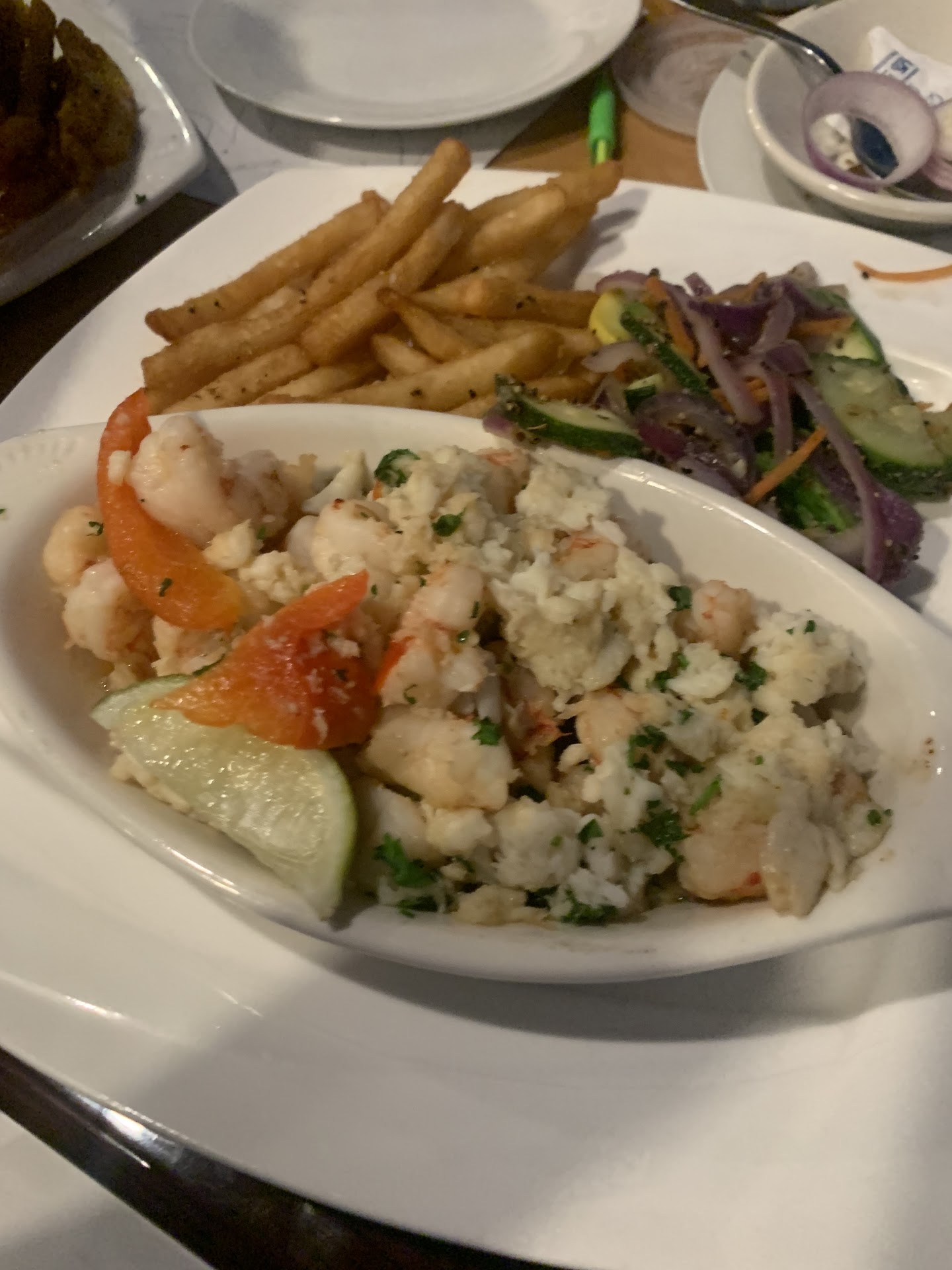 Read moreWonderful experience! We called on a Monday to make a reservation for a party of 8 for that same evening and were fortunate to get in, as they were quite busy when we left. The waiter recommended the most popular cocktails and they did not disappoint! Try the Mullet Bowl if you like a little bit of a sweet drink with a pineapple citrus flair. We had young children with us, and they did a lovely job accommodating. While the atmosphere is more suited for adult dining, this place has a nice little menu for kids, crayons, and they shot out the kids’ food quick to keep them content. Now for the amazing dinner…. The panned crab and shrimp was delightful. I opted to add scallops to my meal as the menu offers. They pan seared the scallops to perfection. The shrimp and crab were resting in a dish of warm butter. Some other reviews might complain that there was a lack of seasonings, but if you’re a true sea food lover, you know that fresh seafood like this only needs a tiny squeeze of lemon and it is absolutely heavenly! This was the freshest shrimp I have ever eaten. For the two sides, I had pilaf and a baked potato. (There was a very popular potato that was out because it was so popular! Can’t wait to go back to try it). The Pilaf had a spicy sauce drizzled over it. The baked potato was your usual, it was done right, with butter and sour cream on the side. Another person in my party got the same meal and we agreed about how wonderful it was. The only difference is that he got steamed veggies. He said the zucchini and squash were were cooked until soft but still held a good crunch, which he felt was better than steamed veggies you get at other restaurants. The last thing I can share is that another person in our party loved and devoured the fried scallops and hush puppies. We all left happy! You can see that the owners pour their heart and souls into their restaurant and it’s heart warming. This was our first visit and we will be back every year thanks to this...