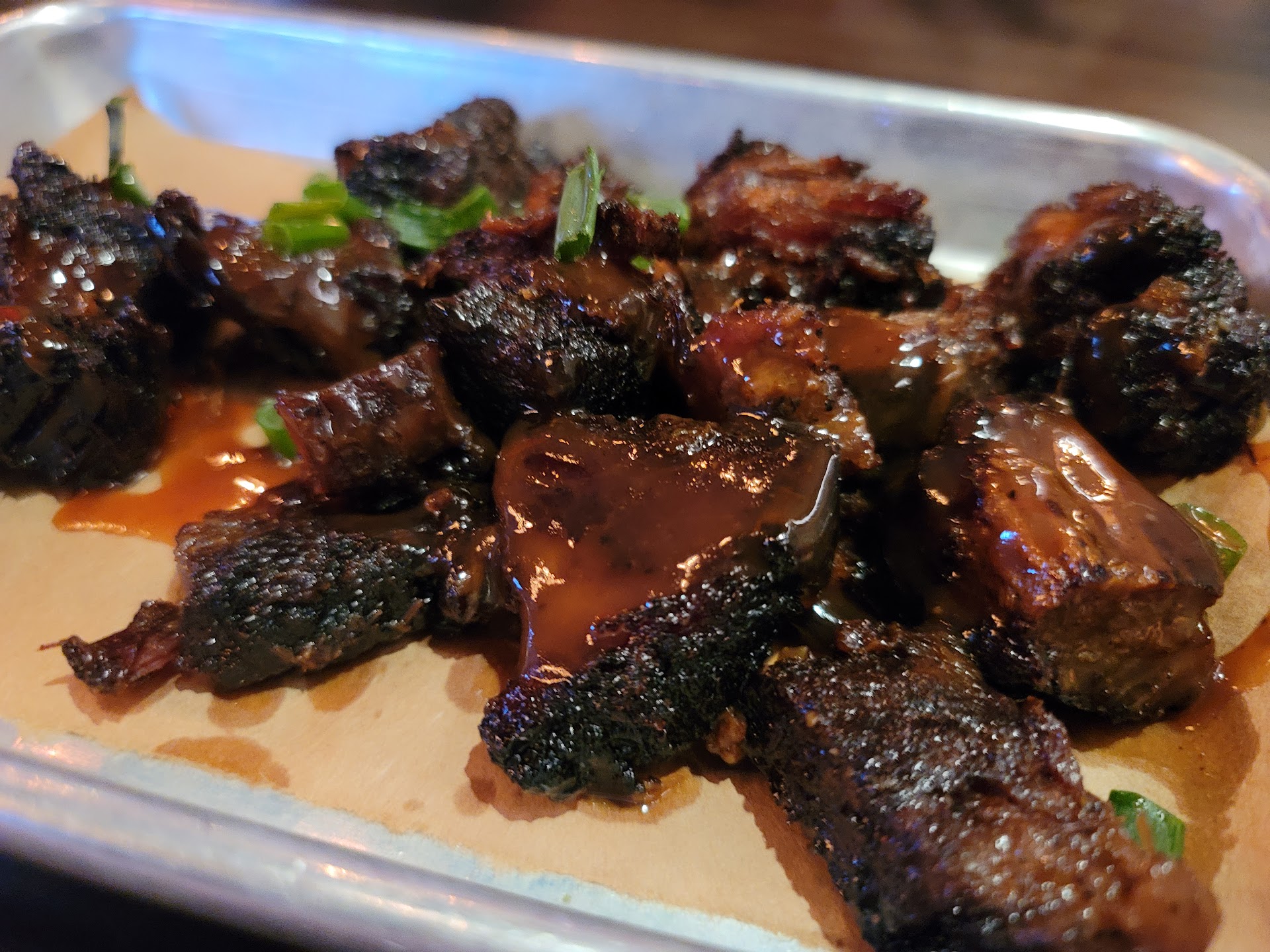 We tried the pig candy appetizer, which was okay. It said on the menu it was pork belly, which it was not. It was thick cut bacon, but still okay. Average I would have to say.