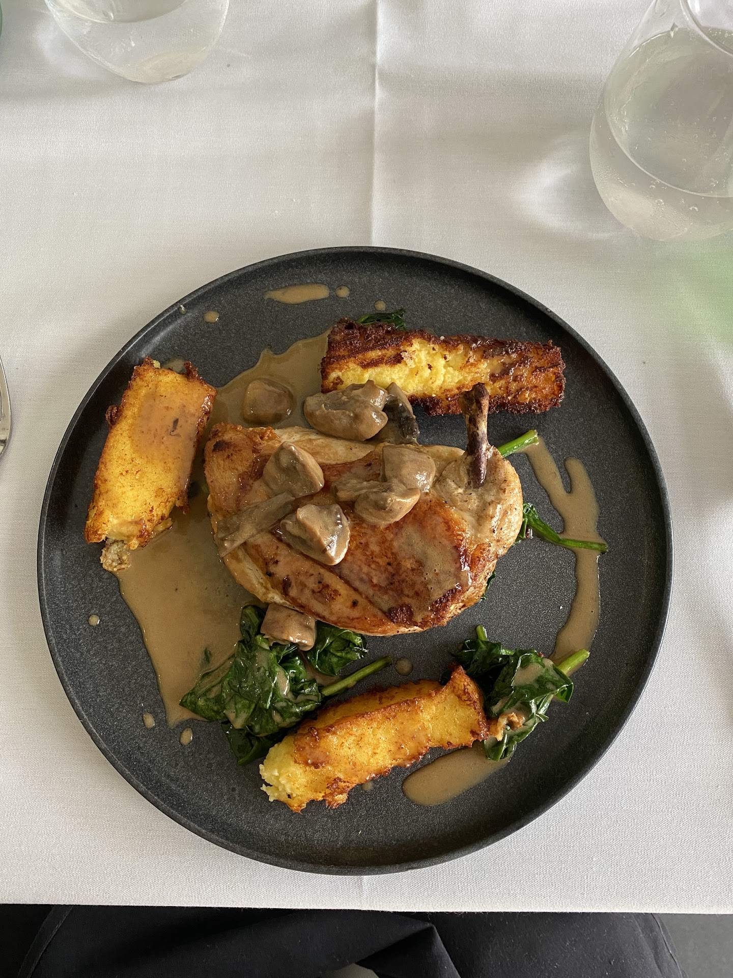 Many menu items from the previous owners still adorned the menu which where tasty! While almost everything was tasty nothing was outstanding or unique. Sadly there where no fun Christmas entree specials. We had the duck fat fries, pea soup, truffle mac and cheese and the duck entree. Our meat portion was a thin 3-4 oz oddly small it was paired with a very sad salad which was more like a garnish. We finished our night with tart tartan, cremebrulee and affagotos. Yummy!