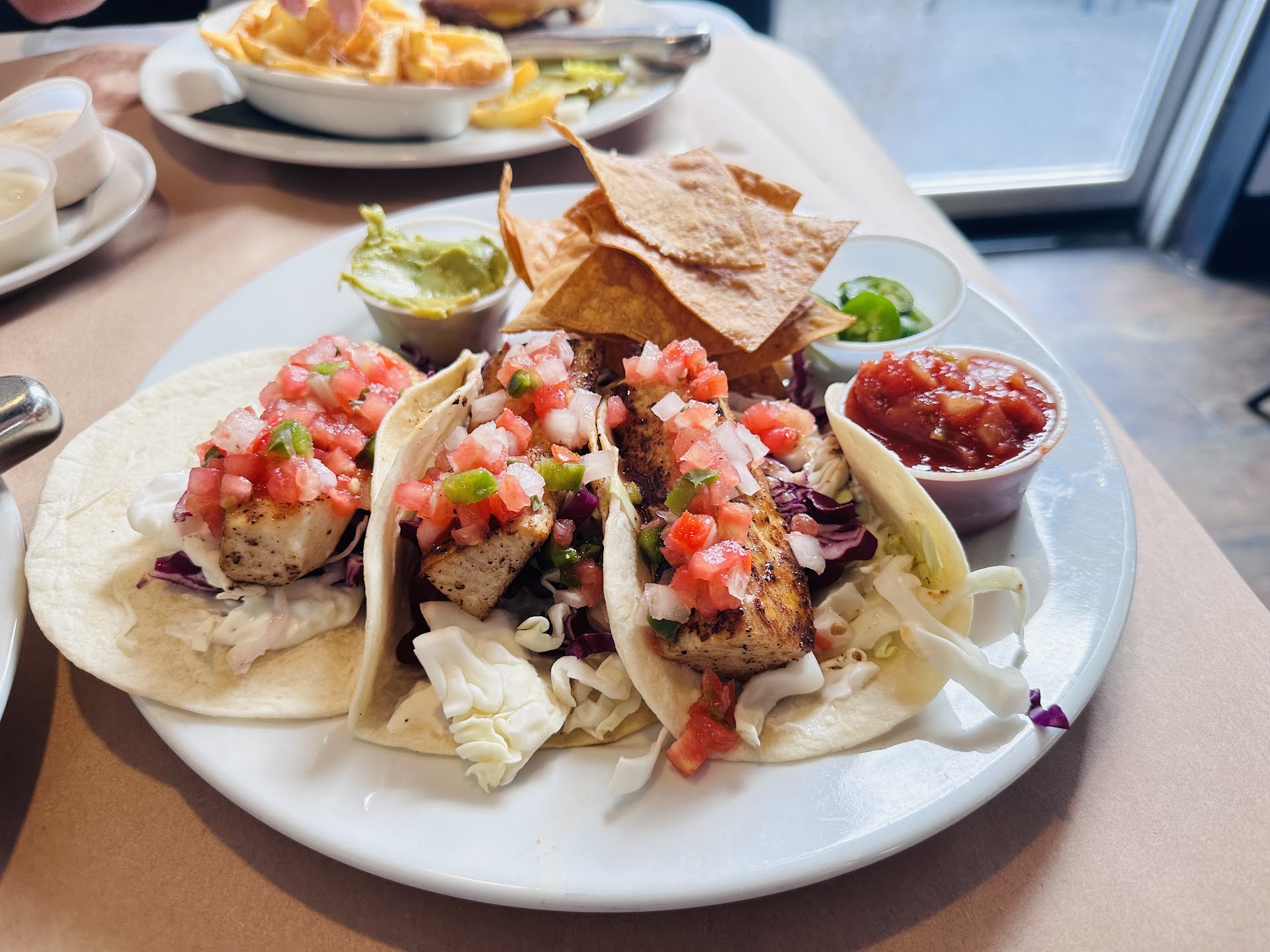 Reluctantly putting the Lobster burger to the side, I focused on the Mahi Mahi Tacos. They offer these with Salmon as well, but Salmon, to me, has a high degree of risk as to freshness, and the cook this day was struggling a bit, which is why I went with the Mahi Mahi. With that being said, the tacos were delectable and well above average. Something was a bit off, maybe the salsa or the seasoning on the fish, regardless they were a solid B+.