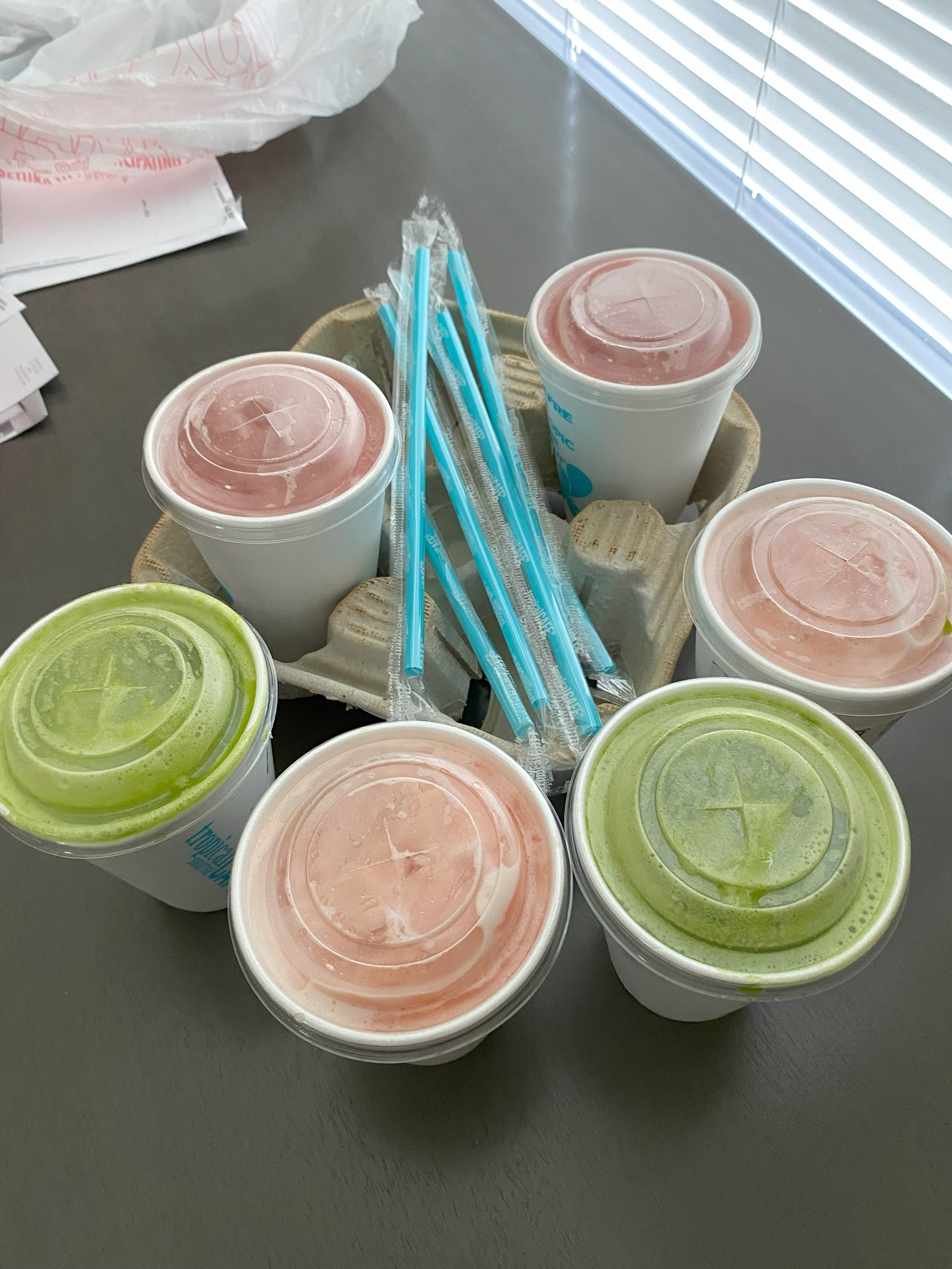 Read moreThis was probably the worst experience I've had at any Tropical Smoothie location. Not a single employee acknowledged me, or the group ahead of me waiting to order for a solid 4-5 minutes. The group left annoyed without ordering, but I stayed because I ordered online. I waited at the online order pickup area for another 2-3 minutes before an exasperated employee finally came over to help me. After receiving my smoothie and leaving I took a sip as I was driving away and this smoothie was probably the chunkiest and most watery smoothie I've ever had. It wasn't blended all the way and was full of ice chunks and pieces of unblended fruit and spinach. It's a shame because I was really looking forward to this smoothie. At least I know to stay away from...