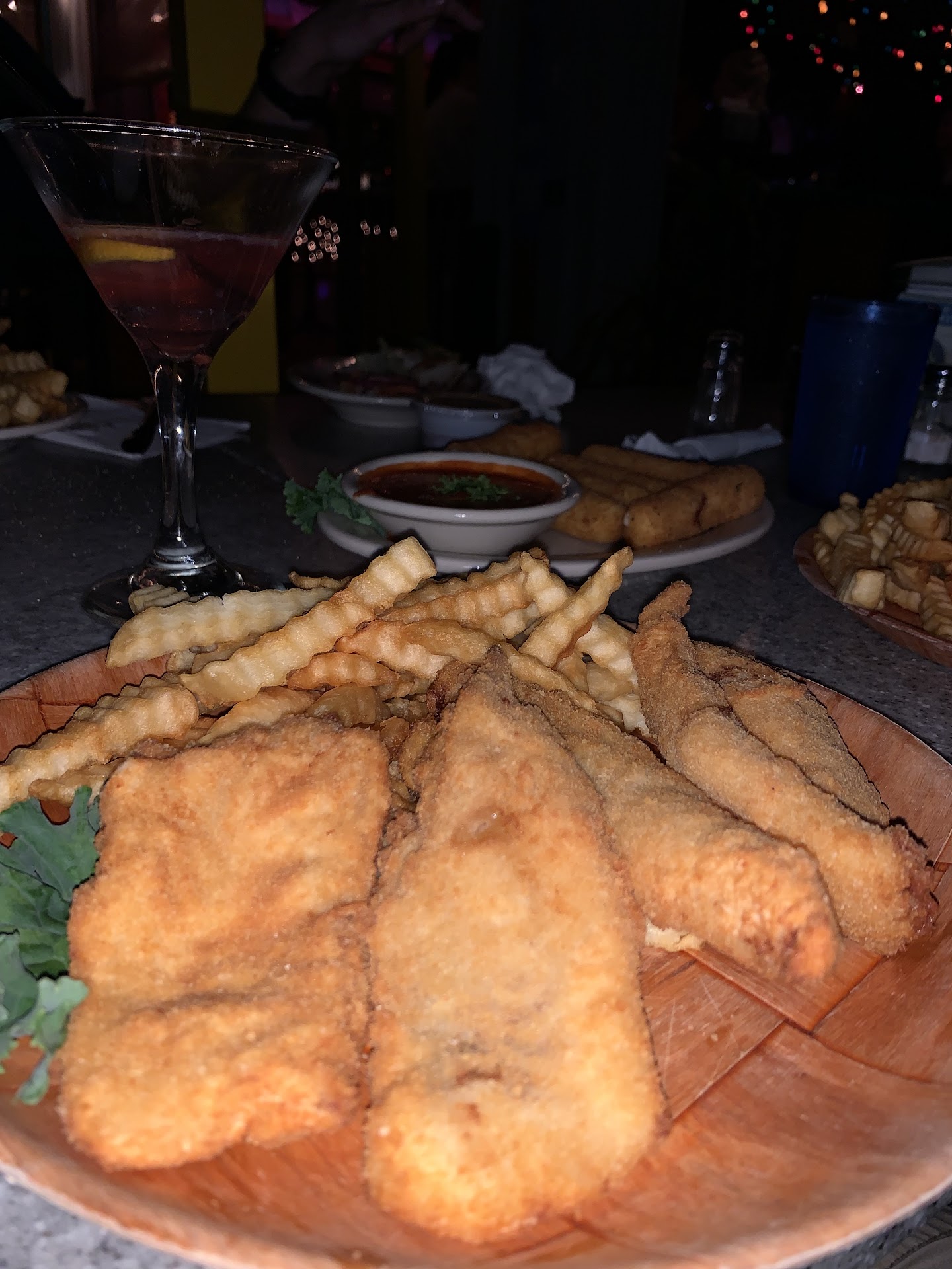 Read moreDriving down Gulf Blvd., my husband and I decided to stop at the whimsical seafood place for lunch. Being not so busy because it is still the covid time, we got seated by a polite enough waitress, and we ordered something off the tap. We added on an order of Florida alligator bites to the drink order and looked at the menu some more. It had plenty of nice sounding seafood fare. But when we asked a couple of questions about the menu, our server became kurt and dismissive. We finally decided on the cod platters. I ordered mine broiled and hubby got his fried. When the alligator bites arrived, it had a mild flavor and nice crunch, but, we've had alligator many times before, from Houston to Seattle and this particular alligator dish the meat was tight and chewy which I've never had. I joked with my husband that it must have been a geriatric alligator, haha.