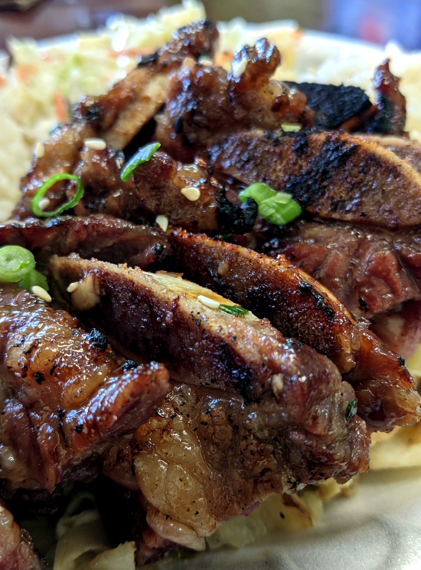 I had the Big Kahuna Platter (3 meats) with rice and macaroni salad (Hawaiian style, not "Southern"). Simply amazing! She had the Shoyu Chicken which was also part of my platter, but amazing none-the-less.