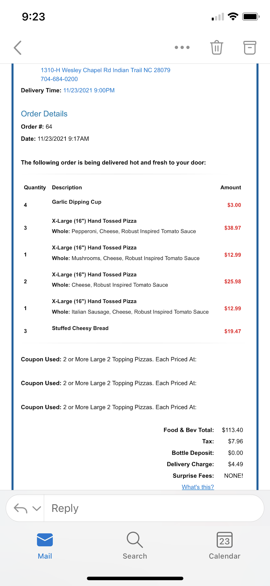 Read moreI recently had an absolutely fantastic experience at the Domino’s Pizza on 1310-H Wesley Chapel Rd in Indian Trail, NC (often referred to as the Sun Valley location), and I can’t say enough good things about it! My pizza was hot, fresh, and loaded with toppings—exactly what you want from a Domino’s order.