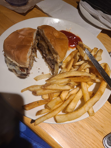 The food was not worth our 1.5 hour wait. We watched many customers that came in after us get served their meal and even leave before we got our food. It was terrible. 7 of the 9 in our group were served. The 8th meal came out about 5 mins later and we were told they were plating the 9th meal. After most of us were done eating and asking multiple times when the other meal was coming out, it came out when everyone was done eating. And it was a sandwich! That shouldn't take very long to make. 4 of us ordered sirlion steaks, one came out looking like a roast, about 3" thick and the size of my palm. Two others were cooked wrong, one was ordered medium well and came out medium rare and the smothered steak came out over cooked. When the waitress dropped our food off she asked what else she could get us and we said silverware. She pointed to the forks we had on the table from our appetizer and said you have some. We need steak knives! Then she said she was trying her best and would be back with some. She continued to wait on other tables and bring out food to them before bringing us steak knives.
