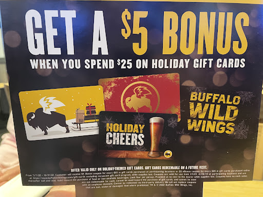 The main draw, of course, is the extensive wing menu. B-Dubs prides itself on offering a vast array of sauces and dry rubs, ranging from sweet and tangy options like Honey BBQ and Asian Zing to fiery concoctions like Mango Habanero and the notorious Blazin' Carolina Reaper. This sheer variety is the restaurant's biggest strength, allowing patrons to customize their orders extensively and experiment with different flavor profiles, whether they prefer traditional bone-in wings or the easier-to-eat boneless variety. While wings are the star, the menu also features a standard selection of pub fare, including burgers, wraps, appetizers like nachos and mozzarella sticks, and salads, providing options for those not solely focused on chicken. Complementing the food is a typically robust beverage menu, heavily featuring domestic, import, and often local craft beers on tap and in bottles, fitting the sports bar theme perfectly. Service is generally casual and can vary depending on how busy the location is – expect potential waits during major game nights. While not a budget dining option, especially when ordering large quantities of wings, B-Dubs often runs specials (like discounted wing days) that enhance its value proposition. Overall, Buffalo Wild Wings successfully fulfills its niche as a go-to destination for watching sports, enjoying a wide variety of wing flavors, and soaking in a high-energy,...