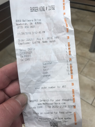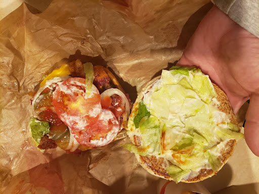 Read moreIf I could leave a review with 0 Stars I would. On 5/9/24 I went through the drive through. Placed my order at 6:50 pm. There were two cars in front of me. I finally got to the window and was handed my tea and asked to pull up and they would bring me my meal. The car behind me pulled up to the window and the line behind him filled up. As we all waited, cars started to pull out of the line and leave. I would have to, had I not placed my order and paid. At 7:20 I got out of my car and walked up to their window and asked if my food was ready. He immediately handed me a sack of food. I was so frustrated waiting for 30 minutes. I had ordered an Impossible Whopper and fries. My Burger was raw inside 🤢 I had to throw it away. Now I’ve fried a burger or two and know that it doesn’t take a 1/4 inch thick burger 30 minutes to cook. (Expected a bigger burger) I’m normally a Burger King Fan…but this Burger King doesn’t meet the standards I’m sure they are expected to meet. Certainly not mine. Won’t be back…I don’t suggest...