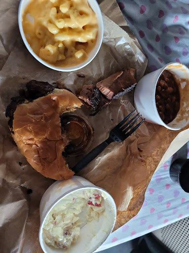 Fairly poor example of barbecue. Miniscule portions, very high prices, for awful barbecue. Their "smokers" use gas. There are a few sticks of actual wood... maybe hickory? mesquite? laying by the smokers. Doesn't matter... they may have been laying there for many years .... unused. There is zero smoky smell in the parking lot (not a good sign for a "barbecue" place), zero smoky flavor... and I mean zero (absolutely none) flavor in the brisket or pulled pork I ordered. Every barbecue place I have ever visited in Dallas...awesome, Fort Worth...awesome, Austin... beyond awesome. Rudy's, a chain in the Southwest...infinitely better. All of the above locations actually smoke brisket and pork. City Barbecue?.?.? might as well be cooked in a natural gas oven, in your kitchen. They got my $20 for miniscule, beyond cheap lunch portions of what they claim to be barbecue. They win, they got my $20. I will never, ever go back there again. If it isn't too long of a drive, and you want real barbecue, there is a hole in the wall restaurant that... by far, serves the best barbecue in...