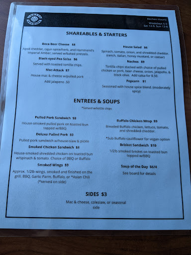 had the beer cheese it was great. it actually had a hoppy funk...very unique and delicious. had the tacos, also good, great sauce and eccoutrements with the food. not simple or one dimensional like a lot of mom and pop places. had the smoke pork shank thing. it truly was a WOW! best thing on the plate. delicate smoke flavors (at home my food is much more smokey) but a sweet golden cooked-ness to the meat that gave the entire piece of meat a caramelized flavor throughout. this thing is worth the drive. also had the Andouille burger; such fantastic texture! not a strong saussage flavor, or it was masked in everything else. but this thing had great chew. i think i had one of each beer, but i only review beer when i am drinking it one-off and sober. but i enjoyed them all.