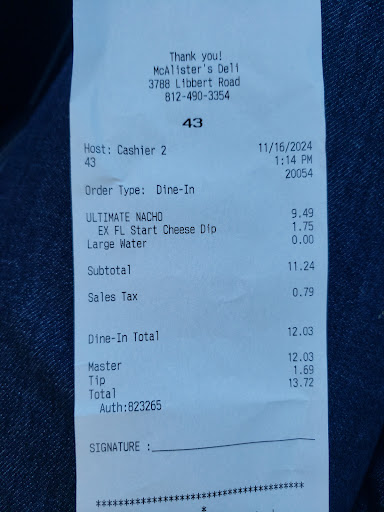 Read moreI recently came to the McCalisters in Newburgh and the young lady clearly was tired and was ready to go home. When I pulled up to pick up my order, she looked at me, rolled her eyes, came to the drive thru window, opened it and just looked at me as to say "What do you want!?" She didn't greet me, she didn't say hello welcome to McCalister's. What's the name for the order? She literally stared at me for 15 seconds m. Then she proceeded to treat me as if she didn't even want to serve me and she was just ready to go home. While her other colleagues stood around behind her on their phones. Hey, I get it, this is the generation that we have to deal with and I know what working hard on your feel will do to you. Not to mention dealing wi the nasty customers, of which I am not one! However, they to have to learn customer service and maturity when working these jobs. The food is always amazing! It's just this is the fourth time I've had this kind of service and quite frankly it's unacceptable . I hope a manager or someone sees this and can...