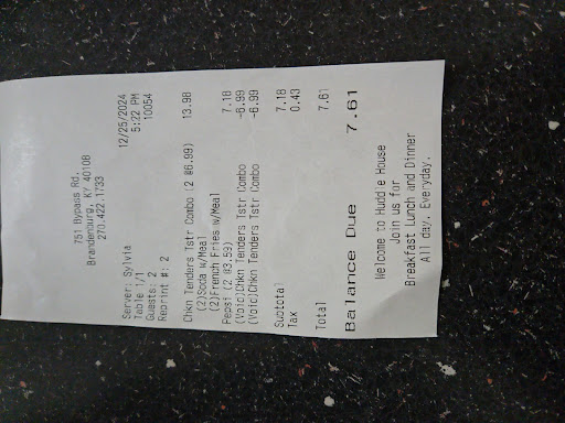 Food: It was good and what you expect from waffle house. The eggs, requested medium, was on point, the waffle wasn't over cooked and the sandwich my husband got he was very happy with!