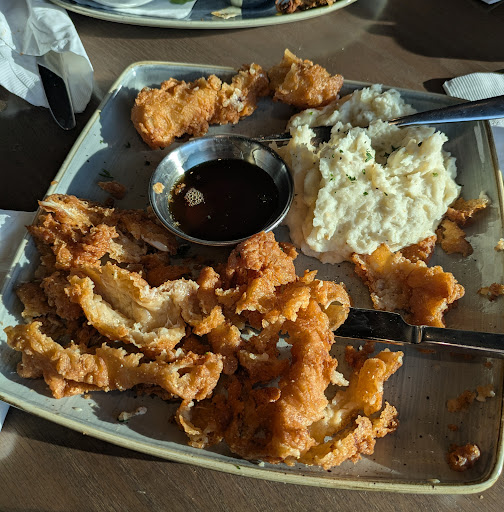 Read moreThought this would live up to the quality of Harry and Izzie's or St. Elmo's but do not let their association confuse you. My partner ordered a salad and shrimp cocktail and she received the wrong side. I ordered the Sweet Tea Fried Chicken which should be called Sweet Fried Chicken Tenders. Tiny strips of chicken that were incredibly over breaded. I dont know if it was undercooked or they just didn't prep the chicken properly but the breading didn't stick to the chicken. The breading just slid off when you bit into it and there was wet dough inside. When I got my food it only had the fried chicken and the potatoes. When I inquired where the slaw was the waitress just said they were out of cole slaw. I asked what I could get substituted and she said they would not give me another side. They then charged me full price for the incomplete meal. Will never eat here again. There's much better restaurants to eat at the Indy airport which will be easier on your...