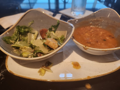 It took over eight minutes to be acknowledged, not very kindly, by a server and another six minutes to receive a bowl of soup and side salad ordered. When the salad arrived, I had several pieces of wilted/ turned lettuce sitting right on top. The soup was tasty, but to leave wilted leaves right on top doesn't show that the staff is attentive to details.