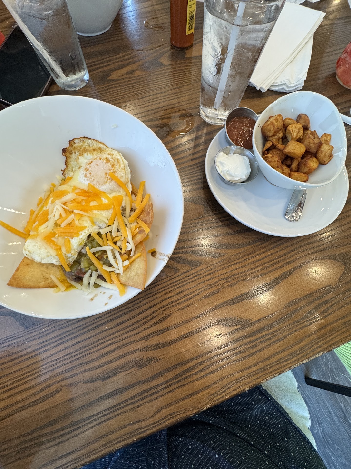 Read moreNot impressed. We went in during brunch on a nice Sunday. The hostess quoted us 30-45 minutes for a table for 2. Not bad considering. Got our initial welcome text and waited. It was an hour before I said something to the hostess. She apologized and said they lost our spot on the waiting list but would seat us immediately. She handed us off to our waitress who seemed less than happy to have us or another table. She placed our menus and asked if we wanted something to drink. I kindly asked for a few minutes to look at the menu since we haven’t been here before and we hadn’t even sat down yet. I had to repeat myself. She came back 5 minutes later. We gave our order and she came back quickly with them. Not an issue. She gave us a few minutes and asked if we were ready to order. We ordered but it was a struggle. She seemed impatient and wasn’t understanding what we needed. One of us has an allergy and we needed clarification. It wasn’t translating for her. We made a modification and things got lost in translation there too. Clearly I was annoyed. Didn’t wait too long for our food. But it was all wrong. Both entrées had to be sent back. My gf ordered the huevos rancheros. Came out without the full ingredients. The flour tortilla chips were not good. The side of pancakes and fruit were right. I ordered the eggs black stone Benedict. I read the menu wrong thought it had ham. My waitress was really good about getting me the ham. However the eggs were over cooked. They were hard boiled eggs. I asked for the manager. Both women were nice and apologetic. The manager redid our food and compt our main entrees. She gave us some free entree cards for next time. It was a nice gesture but Tbh I dnt think we will return. The food was not up to our liking and it was a waste of 2hrs....