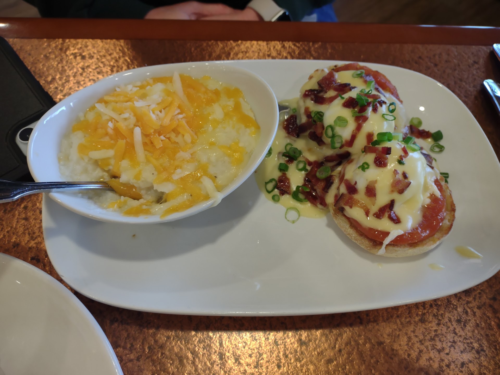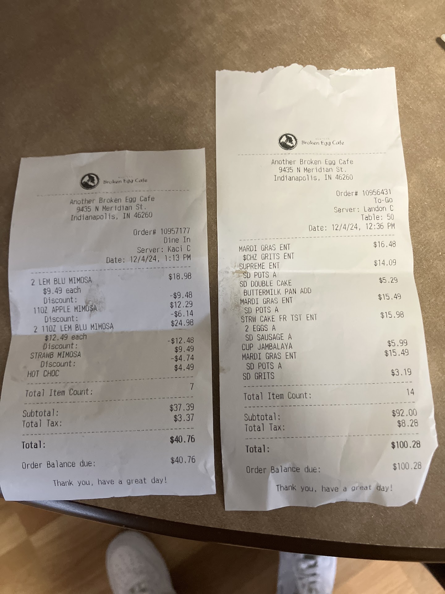 Read moreVisiting in Indianapolis this weekend and decided to have brunch for my sisters birthday here at Another Broken Egg Cafe. We had a large party of 7 which all required separate checks. We all ordered our own entrees and decided on 3 mimosa pitchers to share between 6 of our guests (the 7th does not drink). Our server, Andrea, was very kind upon entrance. She introduced herself and then gave us ample time to look at the menu. Our mimosas took about 15 minutes to reach the table, but they tasted great (I had the strawberry). Our food arrived about 15-20 minutes after receiving the mimosas. It’s a Sunday at noon so the timing on things wasn’t an issue. The issue was when the checks came out. When they were initially brought out they were all wrong except 2. We politely explained the correct bills and waited for them to be brought back to us. We waited another 15 minutes to receive the correct checks. Upon receiving, one of our guests (whose check was initially correct) was told that she needed to pay more money even tho her initial bill was correct. This could’ve easily been fixed but there was a clear lack of communication leading the manager to be called to the table. The manager, Bryan, was very sweet and made sure everything was resolved. The real issue and poor customer service was seen when a server who was not involved in our transaction let alone had any interaction with us, found it appropriate to state “there’s no reason to be loud or to be that rude” to another staff, as well as giving us several side eyes and rude looks. This servers name was Jayden. It was one thing for there to be a confusion, but Jayden really just gave this establishment a bad reputation due to her unprofessionalism and inability to mind...