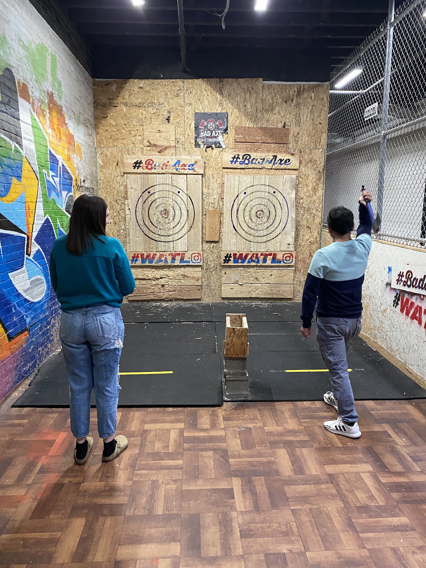 Read moreSet up an event for a bachelor party and it was fantastic. Throwing axes was even more fun and satisfying than I expected,but the thing that made the night AMAZING was the staff! Grant was our staff member for the event and was the only staff member still around for the night. He was a fantastic instructor allowing us to quickly understand different throws and how to adjust our forms to quickly begin sinking axes into targets. All of our party was quickly able to get to a point where they were sinking their axes into targets (even if accuracy came a bit later in the night). Not only did he teach well, but he was patient and kind and quickly was able to make himself a member of the group. As the only staff member that night he also did a fantastic job of making sure that when he had to go deal with walk-ins it did not interfere with our events and we were able to continue doing things and having fun while he quickly and efficiently dealt with the new groups. Grant gave me one of the best customer service experiences I have ever had and I highly encourage anyone to go and book an experience with Bad Axe...