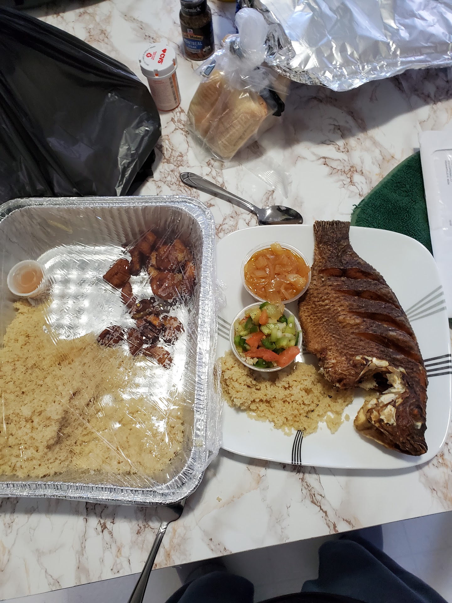 Read moreStopped in last week for the first time, unsure of what to order. The owner made a suggestion and I took it to go.It was the best fish and rice dish I'd ever had. I came back today and asked for anything with the peanut butter sauce I'd heard about. I'm now in the middle of eating this dish and had to stop to make the review of this place, it's that good.