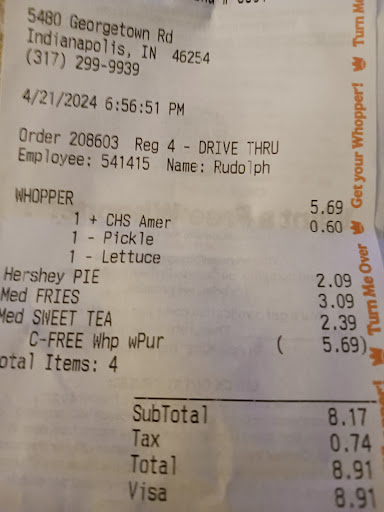 New review 9/10/24 Had receipt with code for free whopper, buy fries & drink. I customized it to add cheese, but no pickles or lettuce. Young lady was new to this type of transaction, after several minutes & attempts the manager finally took over ringing me up. The line guy in back questioned the no pickle no lettuce, Mgr said 'yes and add cheese to it'. I saw the guy grab a sandwich from the front warmer, unwrapped it, added cheese then re-wrapped it & put it back up on the warmer. I presumed it was already mine, but...I got home, bit into my sandwich & into a pickle! I took the top bun off & saw 3 slices and lettuce! Do they not know how to read the order on the monitor? Or follow up after Q & A with the mgr about the order? I'm glad the old crew was gone, but BK needs to make sure that new hires are thoroughly trained for their positions. 'Have it your way' apparently doesn't mean anything anymore, at least at this location. I wasn't even given a receipt this time, so couldn't do the survey to let corporate know. I'll probably go to a different location next time I crave a whopper. This makes 5 restaurants in my neighborhood I now avoid, due to extremely crappy service. I have to go out of my way just to get decent food & service! The following review is from April '24: Custom sandwich incorrect...ordered a whopper with no pickle or lettuce...but it had 5 pickle slices and NO tomato. Tried to call to speak to manager, but no one picked up...went to voice-mail. I do think they've recently hired a new crew, which is great, but they should be able to read & know the difference between tomato & pickles. Here's hoping this crew gets...