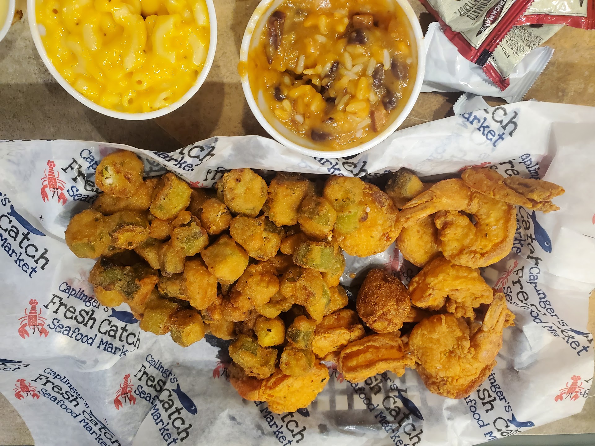 Really Caplingers Fresh Catch, what kind of operation do you all have going on there. What else is in the food? I've had lots of hushpuppies, lots of tenderloins and lots of Rootbeer, but this was. . . addicting.