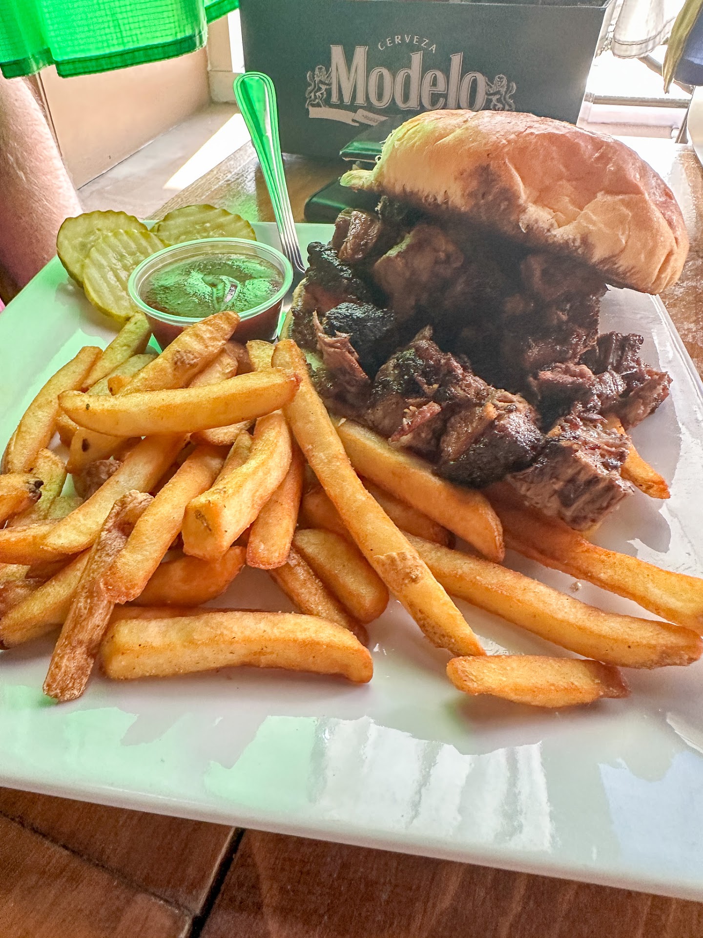 Our group shared the Smoked Mac and Cheese Bites with ranch (5/5 stars). Our entrees included a Cuban Sandwich (4/5 stars). Some of the meat from the smoker was a tad burnt, but overall a good sandwich still with some delicious fries. Breaded Tenderloin, which our friend enjoyed. And lastly, a Beef Brisket Sandwich with fries (5/5 stars).