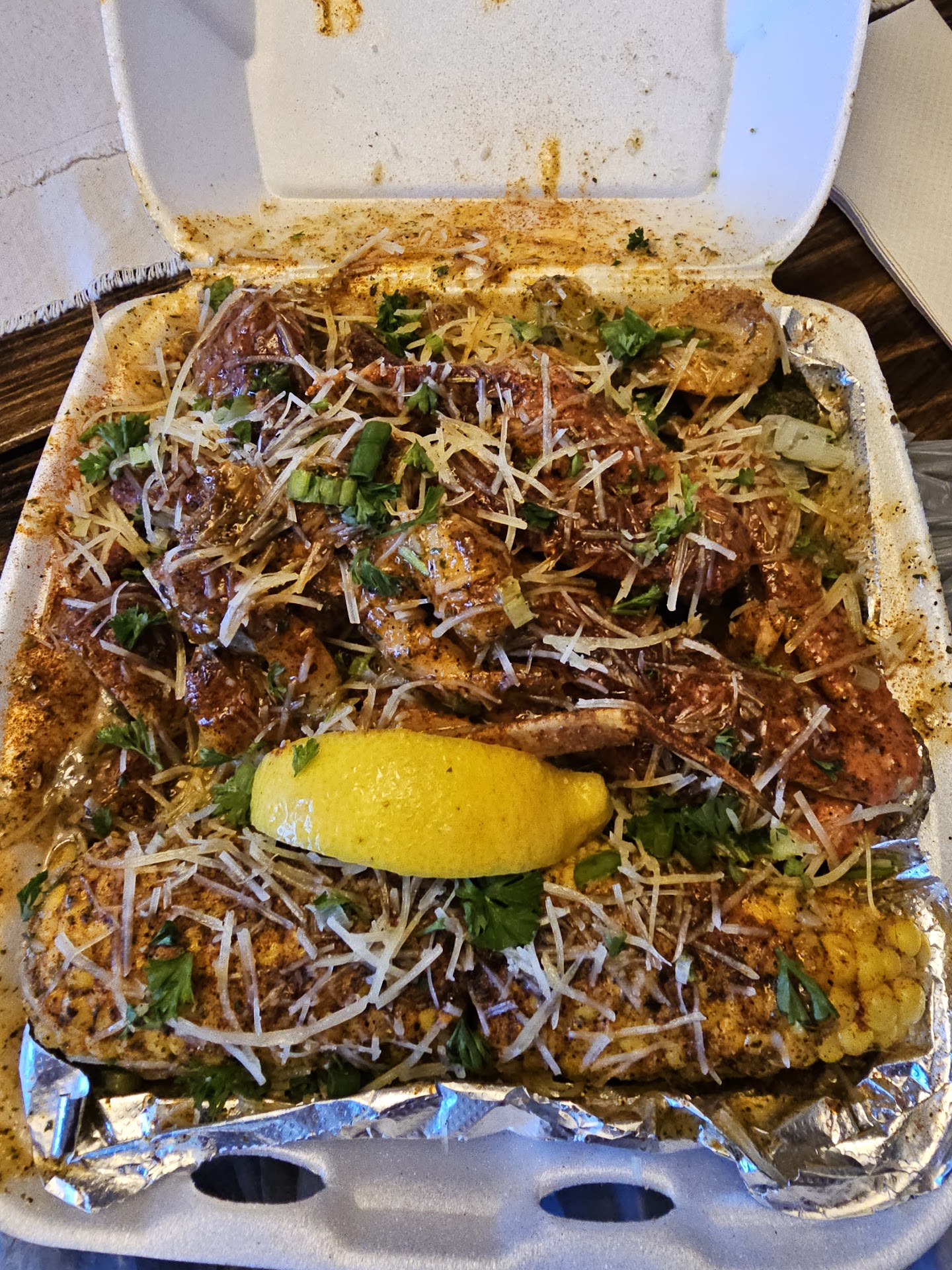 Read moreWas really excited to try this place as it had been featured on several shows and had great reviews online. I was severely disappointed. First we waited in line for approximately 25 minutes to place an order while the young man at the window sat on his phone. There were only 3 people in front of us and they too were waiting to place an order. After 25 minutes the young man announced they were out of potatoes and broccoli and he resumed taking orders. When asked if the price would be adjusted for the items they were out of he said no. Would extra items be given to replace the items? Again, no. We placed and order for 2 plates of crab shrimp and lobster tail loaded and 1 plate of shrimp and legs loaded ($144.00). No explanation of why the price charged didn’t match the price listed. No receipt given even when requested. Now the food.The crab legs were water logged and tasteless. Some of the shrimp wasn’t fully cooked and the lobster tails were tiny and stuck in the shells. They forgot the eggs so basically we paid for loaded plates and each got 1 piece of corn. Loaded per their menu comes with potatoes, broccoli, corn and egg. 2 of us got severely ill that afternoon about an hour after eating the food. Gong to the bathroom and throwing up. I’m not sure what the hype is about but as someone who consumes seafood daily this place was less than acceptable both in taste and...