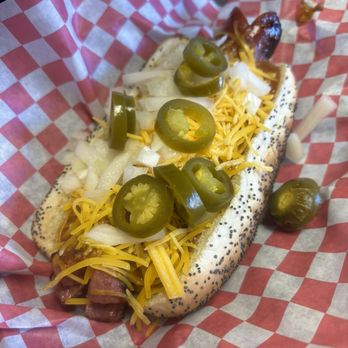 Read moreStopped by this afternoon about 12:30 with my younger brother. This place is extremely small and parking could be an issue here. Table seating available and they were very busy. Order your food at the window and pay. Then serve your own soft drinks, they will bring the food to your table when it’s ready. I decided on the Chicago Polish Sausage with onion rings. And little brother tried the Belushi with French fries. The BELUSHI comes with Beef Chili, Shredded Cheddar Cheese, Chopped Onions. And the CHICAGO POLISH SAUSAGE is a 1/4 LB, ALL BEEF Polish Sausage with Mustard, Green Relish, Celery Salt, Chopped Onions, Tomatoes, Kosher Pickle, and Sport Peppers. They were both quite delicious. We both enjoyed our food. Hamburgers are also sold here we seen a couple other customers with burgers, they looked scrumptious as well. Will definitely return and little by little make my way through the wonderful menu. If you’re looking for a dog, Polish sausage or a down-home Burger. Hit the brakes, and pull in here you won’t be...