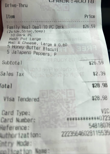 Read moreStopped in to pick up lunch today; ordered the shrimp combo and sweet tea. There was 1 car in front of me but it still took way toooo long to get my food. Got my drink, got my food, drove back to my office to enjoy my shrimp, chicken and jalepeno bites only to find that even though it was listed on my receipt, there was not a trace of cocktail sauce or sauce for my chicken! I do not get take out very often so I was looking forward to a treat, but no. So I decided to do a review like it says on the bottom of the receipt. The first thing the site asks is the restaurant number and since my receipt did not include that info, the site said it could not accept my review. So I called the phone number of the location but no one answered. So here's my advice, to the young man working the window at the Churchs on West 10th, next time check to make sure an order is complete before you hand over the sack! And to the manager? Nice trick not putting your location # on the receipt so people...