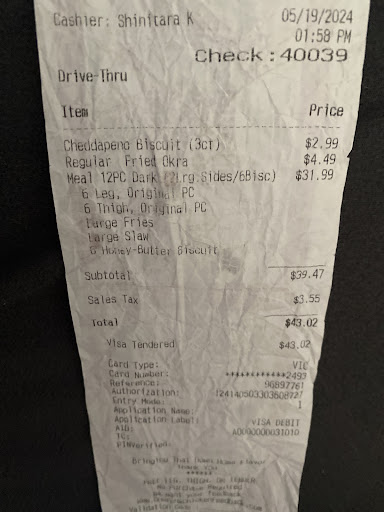 Churches chicken Store #7392 05/19/2024 01:58PM check : 40039