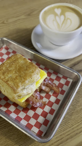 Coat Check Coffee in Indiana presents a unique blend of modern café culture set against the backdrop of a beautifully historic building, offering patrons not only a sip of their delicious beverages but a glimpse into the architectural marvel of its surroundings. During my visit, I had the opportunity to try their latte and the bacon pepper jelly biscuit, both of which were commendable. The latte was well-prepared, boasting a perfect balance of espresso and milk, while the biscuit was a delightful fusion of flavors, making for a tasty and satisfying breakfast option.