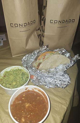 Read moreI tried Condados Tacos on Mass Ave this evening for the 1st time. Let me just say they did not disappoint! We ordered 2 Bud boxes which consists of your choice of 2 taco suggestions, half-size Queso Blanco or guacamole & chips. My choice of Tacos were the Blue Dream taco & the Plain Jane with guac & chips. The other Bud box had The Baja Shrimp Taco & The Cali Green Taco with Queso Blanco & chips. Literally the best Tacos I've eaten in a restaurant. The flavors had a party in my mouth. The Plain Jane oddly enough was my favorite of my two. The Plain Jane has a Kewl ranch shell filled with roasted chicken, fajitas, lettuce, tomatoes, smoked cheddar & salsa Verde! Nothing Plain about it! The shell was still holding up nice & firm when it arrived. The perfect amount of ranch flavor, not over powering the other flavors. The toppings were fresh & bright. Very appealing to the eye and delicious to the taste. Next I had the Blue Dream taco, made with flour tortilla over a kewl ranch corn taco shell filled with tex mex ground beef, lettuce, tomato & Avocado ranch sauce. Again the flavor profile was everything. Perfect blend of flavors & fresh toppings. The side guacamole was just like I like it. Great flavor not bland and not too much lime. Just right! I must say I am thoroughly pleased. The other order had the Baja Shrimp made with Baja California Inspired sautéed Shrimp in a flour tortilla, with rice jicama slaw, Pico de Gallo & Mango basil Baja sauce. Succulent seasoned shrimp paired perfectly with the selected toppings. This one had a little spicy kick to it, not too spicy but just the right amount of heat. The second taco in this box was the Cali Green Taco made with Flour tortilla over a hard corn shell with ground beef, queso Blanco drizzle, lettuce, Pico de Gallo, smoked cheddar, cilantro-lime aoli, & chipotle honey. I didn't try this one but was told it was very delicious and flavorful. The queso with the house made chips was really good. Overall we'd rate this experience a definite 9. I would give it a 10 if I had the full dine in experience which I will do soon. If you haven't tried Condada Tacos yet, put it on your...