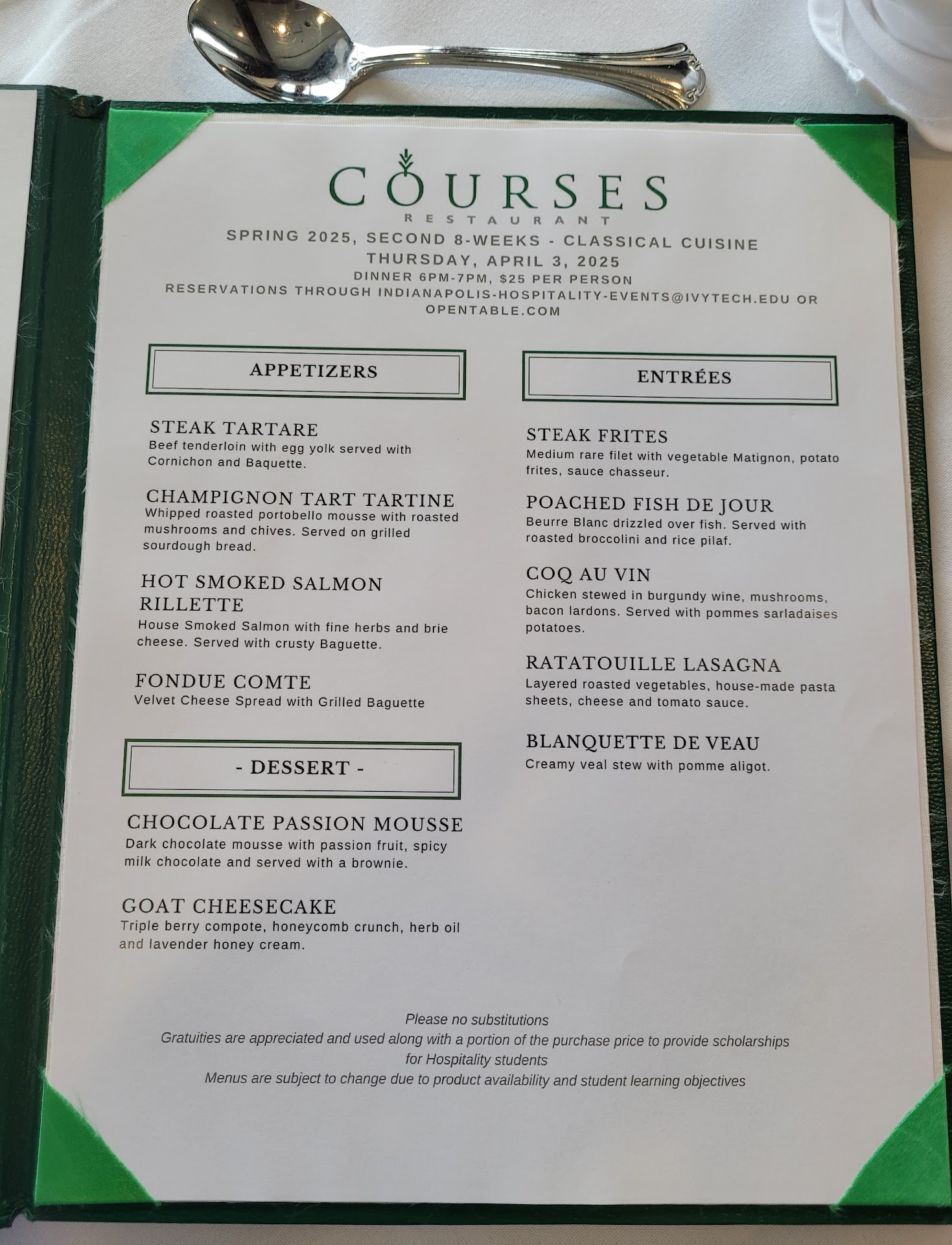 Read moreWow what a great find. The food was fabulous and well presented by the students of Ivy tech. Excellent quality food and beautifully prepared. The duck rillette was really tasty.