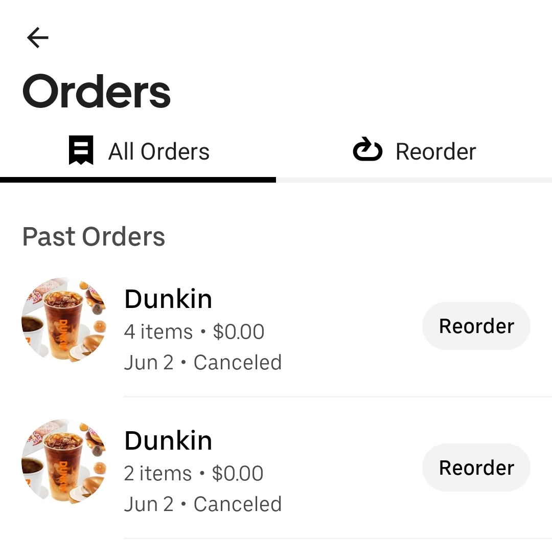 I try to give places the benefit of the doubt when things dont go right. Today I placed a order via UberEats since I'm sick and wanted to treat my 9yr old for being a awesome helper with her baby brothers while dad is out of town. I ordered a Blue Raspberry and Strawberry Coolatta as part of a deal on the app. I had a driver picking up 2 orders for me the drinks from Dunkin being the 2nd stop. I watched as my driver drop the order and only brings me my 1st order. I asked him what happened? Why he didn't pick up the drinks? He told me the employee(s) told him my order had already been picked up and didn't offer anything else. I watched as my order get picked up and dropped by 2 more drivers (which assume got told the same thing). So I called Uber support and they canceled my order since it was stolen. I decided to give Dunkin a chance to redeem themselves and placed a order again sadly this time without the deal I originally had so extra fees added plus 2 donuts. I had promised my kid this drink for her going above and beyond, so I wasn't giving up. I watched as it got assigned to a driver. He then messages me that they didn't have the drinks if I wanted anything else. How? You just made that drink likeb20 minutes prior? Were my drinks actually stolen the first time or did you just not have the drinks available to begin with? Things aren't adding up. So upset and disappointed at this point, I called Uber support again and told them what my driver said and requested my order to be canceled. Uber tried to call the store to confirm they didn't have the drinks and they started hanging up on the support lady the 3 times she tried calling them! UberEats canceled it for me thankfully. My time and all the 4 drivers times were wasted! I can see why this place has such bad reviews. I run a store on my own and would never treat...