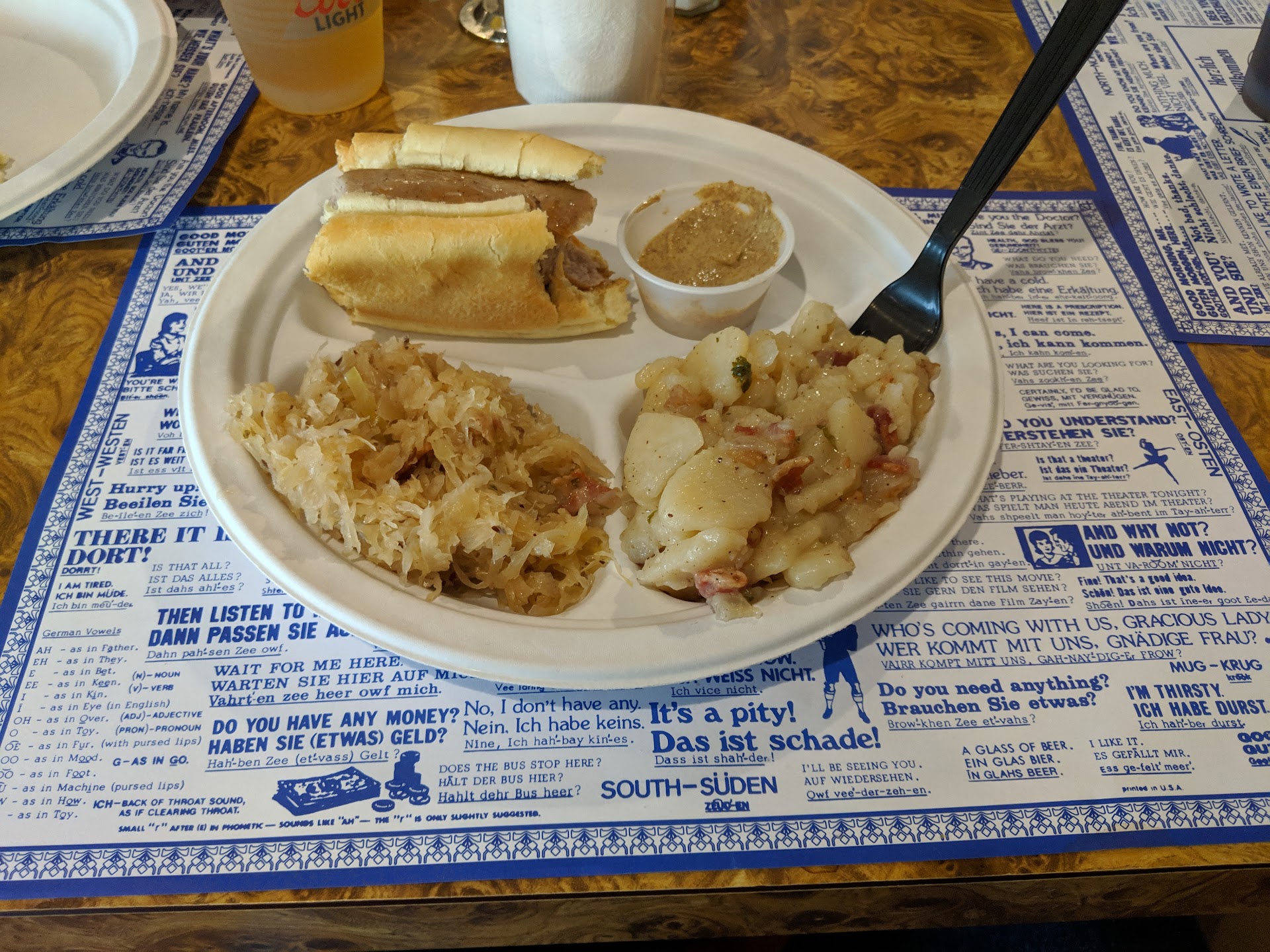 Then the rest of the food - it pretty much tasted like bar food, being assembled in the back kitchen. The "Bavarian pretzel" tasted like a frozen product, the sausages came from a local butcher shop and just heated, the famed "Weiner Schnitzel" tasted mainly like deep fried panko, the "German" sides tasted like nothing does in Germany, and the desserts..well, they did taste like they were made in the kitchen, because a Black Forest cake or a Strudel coming from Sysco would have been more authentic and tastier.
