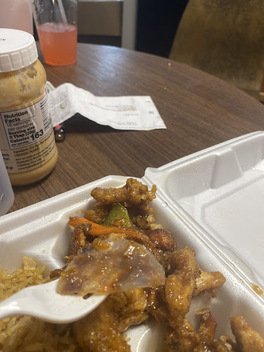 Read moreThere is a distinct lack of ambience. There is a long line that moves through like a cafeteria and you only have a choice of what food is made that day. They have the rotating menus posted, but the print is tiny and, if you have poor eyesight like I do, you run the risk of ordering something they don't serve that day which will result in you getting barked at rudely from behind the counter. You are expected to magically know what they have and have your full order prepared before you approach the counter. The regulars don't seem to mind the rushed atmosphere or the way the food is slopped into styrofoam containers, but if you are a new diner, you may feel intimidated as there is clearly a "system" and no one bothers to explain it. Definitely don't try to customize anything. If, God forbid, you want white rice instead of fried rice like the lady in front of me, at least one regular will complain loudly because that means one of the three people working the counter will have to go back to the kitchen to get it. They do not have soup or fortune cookies, but you will receive a complimentary bag of fried wonton wrappers with your order. Oh, and they do not take credit or debit cards. Bring cash and have it ready before approaching the counter.