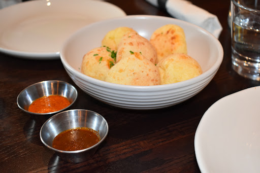 The Pão de queijo (Brazilian Cheesy bread) is absolutely DIVINE. Even better, it's naturally gluten-free with special flour that comes from Brazil! The texture was light, airy, decadent, the cheese is gooey, and so so delicious. They come with sauces that are unexpectedly amazing. This entire experience was unexpected amazing. Best bread I've ever had.