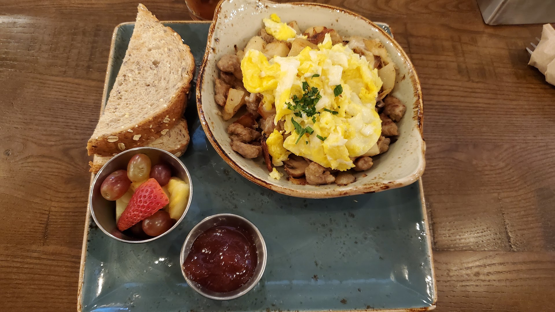 Read moreWent here for the first time May 5th in the hopes to find a competitor to Ruth Cafe in Metro diner in the same area. This was yet again another of the many disappointments across Indianapolis of restaurants that feel that creating a " elevated " meal means rearranging items on a plate in order to make the consumer feel like they're getting something of high quality when in fact they're getting a low quality food in a much less quantity with an increased price that does not match on any scale what this food should cost. Best example is they have a sugar-free syrup a regular syrup and a 100% maple syrup on offer. The sugar-free and the "regular"syrup is free, however the 100% maple syrup which is what you would think syrup is is an extra dollar fifty on top of whatever it is that you order. At this restaurant you have to pay to have actual syrup. It doesn't end there when you order a pancake yes the pancake is as large as a plate however it's not just a pancake it's a quote multigrain " pancake. Direct translation is a pancake that resembles what you think a pancake should be, with a taste of corn muffin mixed in. The only good thing about this place was the server and I was in such a hurry to get out of the restaurant that I forgot to actually ask her name. I am sad to say that even a really super nice server is not enough to make me come back to this overpriced sorry excuse for a...