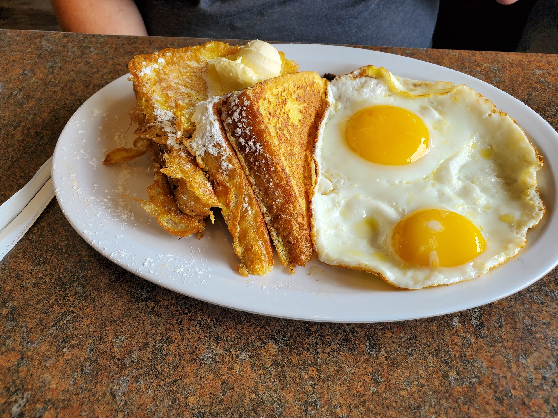 Read moreIm not quite sure why the low ratings but as a tourist from london, me and my partner going on a road trip, we was looking for somewhere that has pan cakes for breakfast and flap jacks came up on google, we thought we would give it a go and found the staff was friendly, very welcoming with big smiles on thier faces. As we got sat down and going through the menu some of the food we wasn't sure of the staff was very nice to help describe as much as they can. My partner had 4 large pancakes which he couldn't finished and I had the omelette that had either potatoes or grits and pancakes the waitress ( Ash p.s when your ever in London look me up ) offered me to try abit of grit and in the end I had pancakes with fruits again I couldn't finish it. Coffee was endless plus you get these different type of little milks ( hazelnut, vanilla and half creme ) which you don't get this in England, service was great, portion was great, easy to get too with free parking which is always handy, and not to mention the price was AMAZING ( €18 = £11.33 ) now you can't get that in London for what we ordered. It was a shame we couldn't stay for dinner as we had to get to the next town. But anyone who going pass the town or going near or even staying in indianapolis down town you must stop by there and try out thier large portion tasty breakfast. Pictures...