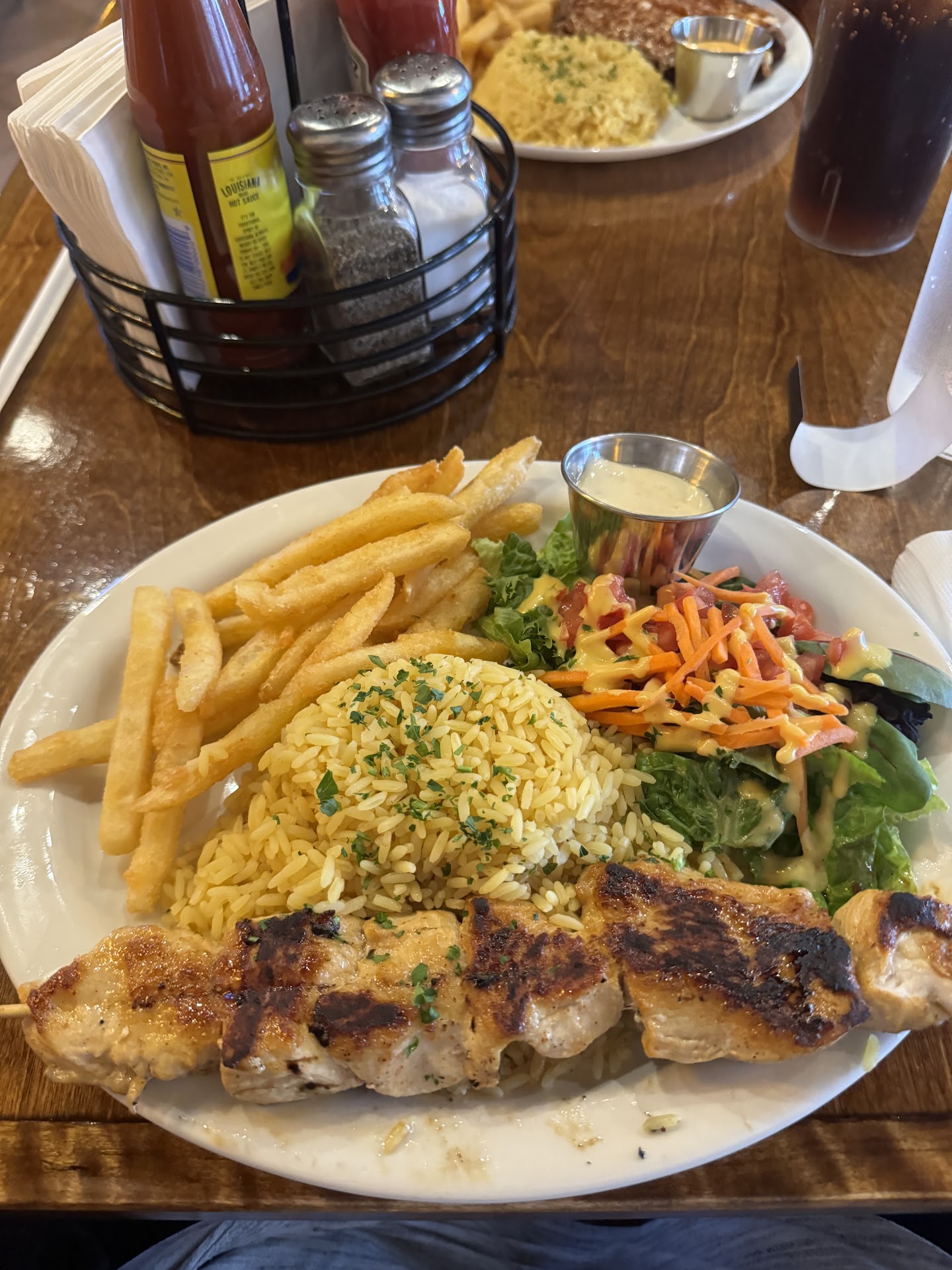 Read moreStopped here for lunch and ordered the Brazilian lemonade, the pastels (one of each), and the Churrasco plate which included large servings of steak, chicken, sausage, and fries. We also ordered a side of collard greens. Our friend tried the Brazilian Stroganoff.