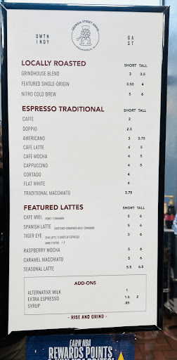 Read moreNovember of 2017, my FFA Chapter took a trip for national convention. My chapter was at the Lucus Oil stadium for a session. We had a 30 min break and my small group was looking for a starbucks. It was raining and cold when we came across this small coffee shop. I walked in and fell in love. The owner is a great guy. He's funny, energetic, and has great taste in music đ. We had a hot and cold peppermint drink, with little cartons of chocolate Almond milk. It was crappy out side but I had somewhere to warm up and make my day. 10/10 recommend. The only thing I would recommend is to open your own shop so your customers can stay and chat with ya while you work. Other than that I told my mother about this place and eventhough I live in Ohio, I will...