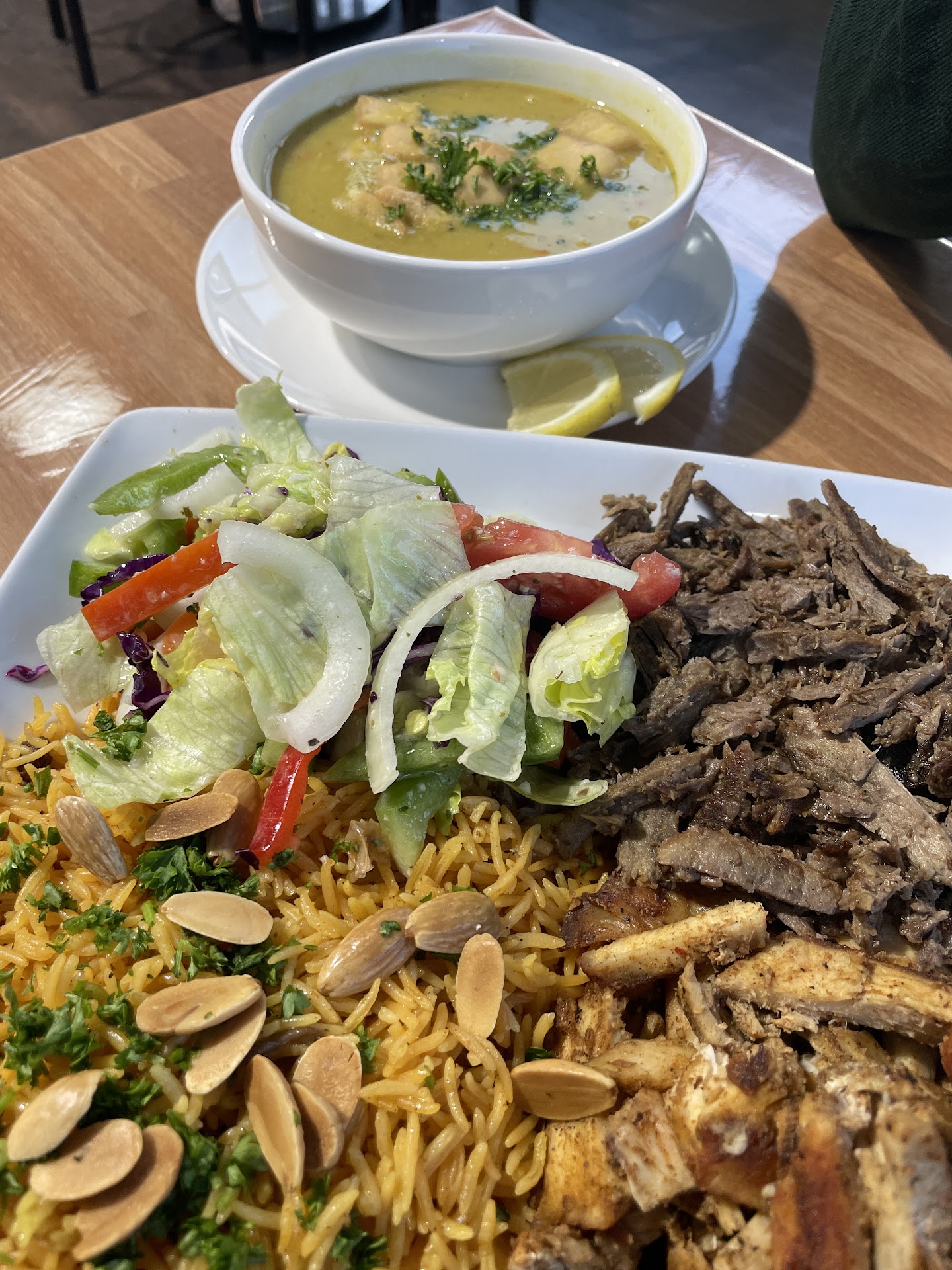 Read moreI had a really great experience here at AIMMART the other day. I had probably driven past this place many times, but stopped in to see what it was like inside. It was huge! Packed with all sorts of Middle Eastern products—from food and drinks to clothing. There is a bakery inside that make fresh pita but the highlight for me was the small restaurant inside. We ordered the shawarma plate and a lentil soup. The shawarma was packed with flavor but the tahini and garlic dipping sauce on the side were key! The lentil soup was also so tasty and provided a great balance to the shawarma dish. This is a great hidden gem and I can’t wait to explore more...