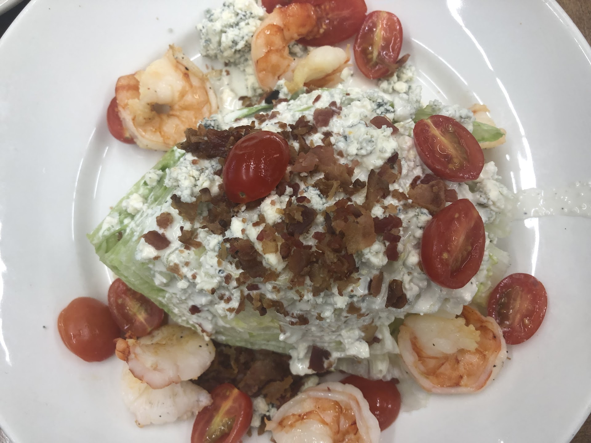 The ber was a little flat (see pic ) but cold, and the soup came out pretty fast. I enjoyed the Bisque and although through my travels I have had better, this one was okay, and great if you're in a hurry to catch a flight. The Wedge was as you can imagine, a wedge of lettuce, sprinkled with bacon, with chopped tomatoes and served with their creamy gorgonzola dressing. I admit there was a bit too much dressing for my taste so I f I ever have this again I will ask for 'light on the dressing'.