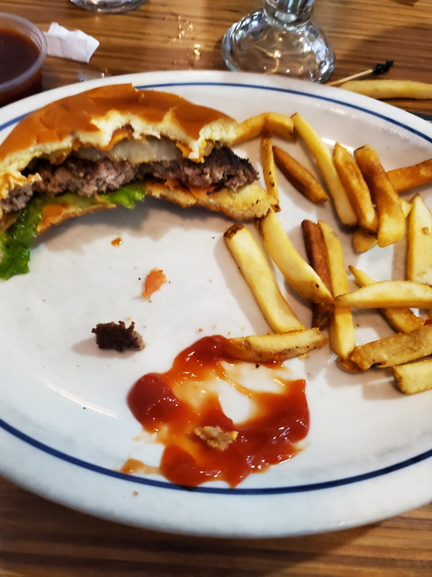 Here's the details: I arrived at about 4pm with my 5 year old daughter, there were two tables occupied, business was slow, yet and there was nobody at the front to get us a table. I waited for about 5 minutes until I could get the attention of someone in the back who could get us a table. The young man who seated brought us to the table, gave us both menus (no kids menu for my daughter), then walked away without a word. The table had on it a coffee carafe that still had dried coffee splatter on it from who knows how long ago. The table across from us had fries and ketchup still on the table (which never got cleaned while we where there). Five minutes later he came back to take out drink orders, and before I could let him know we were ready to order food, he was gone. I thought maybe he was the only one working, but I saw an older fellow in an Ihop shirt kind of meandering around another area. Then I saw another employee go to another section to bus a table, but she didn't bring a tray or anything. She picked up the dished she could without getting her bejewelled nails dirty, and carried them to the back, and repeated this process over the next 10 minutes until the table was cleared. I didn't see her come back to wipe the table down. In the mean time the waiter came to take out order, on a tiny slip of paper and his hand as an order pad. His pen punched through the paper. I ordered a Jalapeno burger with onion rings, and my daughter ordered chocolate pancakes with strawberries, just like the picture in the menu, I emphasized that it should be whatever the kids menu equivalent was. He left the menus with us. Which was fortunate because the next guests that came were seated in the booth adjacent to us and they never got menus, so I gave them ours. Our food came out in a reasonable amount of time. My plate had a chicken sandwich (not a burger) and my daughter's plate was clearly an adult sized meal, but no strawberries. They did put a smiley face with whipped cream for her, she loved that. I didn't want to wait any longer, so I didn't complain, chicken sandwich is good enough, and my daughter didn't seem to miss the strawberries. Our drinks were empty, we were never checked on, and I had to get someone's attention to get out check. There was nobody at the counter, so I paid at the table, and we left, to...
